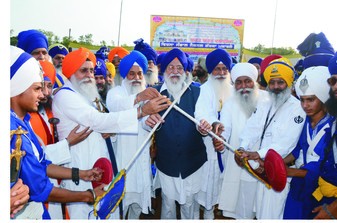 ਸ੍ਰੀ ਅਨੰਦਪੁਰ ਸਾਹਿਬ : ਸ੍ਰੀ ਅਨੰਦਪੁਰ ਸਾਹਿਬ ਦੇ ੩੫੦ ਸਾਲਾ ਸਥਾਪਨਾ ਦਿਵਸ ਨੂੰ ਸਮਰਪਿਤ ਸ਼ਸਤਰ ਵਿਦਿਆ ਤੇ ਅਧਾਰਤ ਜੰਗਜੂ ਖੇਡ ਦਾ ਉਦਘਾਟਨ ਛਾਉਣੀ ਨਿਹੰਗ ਸਿੰਘਾਂ ਵਿਖੇ ਸਿੰਘ ਸਾਹਿਬ ਗਿਆਨੀ ਮੱਲ ਸਿੰਘ ਜਥੇਦਾਰ ਤਖ਼ਤ ਸ੍ਰੀ ਕੇਸਗੜ੍ਹ ਸਾਹਿਬ ਦੇ ਅਰਦਾਸ ਕਰਨ ਉਪਰੰਤ ਸਿੰਘ ਸਾਹਿਬ ਗਿਆਨੀ ਗੁਰਬਚਰਨ ਸਿੰਘ ਜਥੇਦਾਰ ਸ੍ਰੀ ਅਕਾਲ ਤਖ਼ਤ ਸਾਹਿਬ ਅਤੇ ਜਥੇਦਾਰ ਅਵਤਾਰ ਸਿੰਘ ਪ੍ਰਧਾਨ ਸ਼੍ਰੋਮਣੀ ਗੁਰਦੁਆਰਾ ਪ੍ਰਬੰਧਕ ਕਮੇਟੀ ਨੇ ਕੀਤਾ।