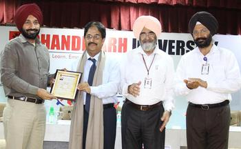 ਚੰਡੀਗੜ੍ਹ ਯੂਨੀਵਰਸਿਟੀ ਵੱਲੋਂ ਇਸ ਮੌਕੇ ਗੇਲ ਇੰਡੀਆ ਦੇ ਪ੍ਰੋਜੈਕਟ ਡਾਇਰੈਕਟਰ ਅਤੇ ਮਹਾਂਨਗਰ ਲਿਮ. ਦੇ ਚੇਅਰਮੈਨ ਡਾ. ਆਸ਼ੂਤੋਸ਼ ਕਰਨਾਟਕ ਨੂੰ ‘ਇੰਜੀਨੀਅਰ ਆਫ ਦਾ ਯੀਅਰ-2015’ ਦੇ ਖ਼ਿਤਾਬ ਨਾਲ ਨਿਵਾਜਿਆ ਗਿਆ। ’ਵਰਸਿਟੀ ਵੱਲੋਂ ਇਸ ਮੌਕੇ ਖੋਜ ਕਾਰਜਾਂ ’ਚ ਬਿਹਤਰ ਪ੍ਰਦਰਸ਼ਨ ਕਰਨ ਵਾਲੇ ਮਕੈਨੀਕਲ ਇੰਜੀਨੀਅਰਿੰਗ ਸੱਤਵੇਂ ਸਮੈਸਟਰ ਦੇ ਵਿਦਿਆਰਥੀ ਗੁਨਤਾਸ ਨੂੰ 10 ਹਜ਼ਾਰ ਦੀ ਨਕਦ ਰਾਸ਼ੀ ਸਮੇਤ ‘ਸਟੂਡੈਂਟ ਇੰਜੀਨੀਅਰ ਆਫ ਦਾ ਯੀਅਰ-2015’ ਦਾ ਐਵਾਰਡ ਪ੍ਰਦਾਨ ਕੀਤਾ ਗਿਆ ਜਦਕਿ ਸਰਵੋਤਮ ਖੋਜ ਪ੍ਰੋਜੈਕਟ ਤਿਆਰ ਕਰਨ ਵਾਲੇ ਐਰਸਪੇਸ ਇੰਜੀਨੀਅਰਿੰਗ ਦੇ ਵਿਦਿਆਰਥੀਆਂ ਗਾਰਵਿਟ ਜਿੰਦਲ ਅਤੇ ਯੋਗੇਸ਼ ਹਰੇਕ ਨੂੰ 7000 ਦੇ ਨਕਦ ਇਨਾਮ ਨਾਲ ਵਿਜੇਤਾ ਅਤੇ ਲੇਜ਼ਰ ਇਨਗ੍ਰੇਵਰ ਖੋਜ ਪ੍ਰੋਜੈਕਟ ਤਹਿਤ ਮਕੈਨੀਕਲ ਇੰਜੀਨੀਅਰਿੰਗ ਦੇ ਵਿਦਿਆਰਥੀ ਰਜਤ ਮਠਾੜੂ ਨੂੰ 5000 ਦੇ ਨਕਦ ਇਨਾਮ ਨਾਲ ਉਪ ਵਿਜੇਤਾ ਦਾ ਖ਼ਿਤਾਬ ਪ੍ਰਦਾਨ ਕੀਤਾ। ਇਸ ਦੌਰਾਨ ਇਲੈਕਟ੍ਰੋਨਿਕ ਐਂਡ ਕਮਿਊਨੀਕੇਸ਼ਨ ਇੰਜੀਨੀਅਰਿੰਗ ਦੀ ਵਿਦਿਆਰਥਣ ਹਿਨਾ ਪੁਰੀ ਅਤੇ ਉਨ੍ਹਾਂ ਦੀ ਟੀਮ ਦੇ ਖੋਜ ਪ੍ਰੋਜੈਕਟ ਵਿੰਡ ਪਾਵਰਡ ਮੋਬਾਇਲ ਚਾਰਜਰ ਨੇ ਤੀਜਾ ਸਥਾਨ ਪ੍ਰਾਪਤ ਕਰਕੇ ਆਪਣੀ ਬਿਹਤਰੀਨ ਪ੍ਰਤਿਭਾ ਦਾ ਪ੍ਰਦਰਸ਼ਨ ਕੀਤਾ।