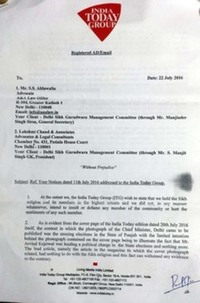 ਨਵੀਂ ਦਿੱਲੀ : ਦਿੱਲੀ ਦੇ ਮੁਖ ਮੰਤਰੀ ਅਰਵਿੰਦ ਕੇਜਰੀਵਾਲ ਦੀ ਨਿਹੰਗ ਬਾਣੇ ਵਿਚ ਫੋਟੋ ਹਿੰਦੀ ਰਸਾਲੇ ਇੰਡੀਆ ਟੂਡੇ ਵਿਚ ਛਾਪਣ ਤੇ ਦਿੱਲੀ ਸਿੱਖ ਗੁਰਦੁਆਰਾ ਪ੍ਰਬੰਧਕ ਕਮੇਟੀ ਵੱਲੋਂ ਬੀਤੇ ਦਿਨੀਂ ਕੀਤੀ ਗਈ ਕਾਨੂੰਨੀ ਕਾਰਵਾਈ ਦਾ ਅਸਰ ਸਾਹਮਣੇ ਆਇਆ ਹੈ। ਇੰਡੀਆ ਟੂਡੇ ਗਰੁੱਪ ਦੇ ਮੁਖ ਕਾਨੂੰਨੀ ਅਧਿਕਾਰੀ ਡਾ. ਪੁਨੀਤ ਜੈਨ ਨੇ ਇਸ ਸਬੰਧ ਵਿਚ ਦਿੱਲੀ ਕਮੇਟੀ ਦੇ ਪ੍ਰਧਾਨ ਮਨਜੀਤ ਸਿੰਘ ਜੀ. ਕੇ. ਅਤੇ ਜਨਰਲ ਸਕੱਤਰ ਮਨਜਿੰਦਰ ਸਿੰਘ ਸਿਰਸਾ ਵੱਲੋਂ ਦਿੱਤੇ ਗਏ ਕਾਨੂੰਨੀ ਨੋਟਿਸ ਦੇ ਜਵਾਬ ’ਚ ਰਸਾਲੇ ਦੀ ਇਸ ਗਲਤੀ ਲਈ ਖੇਦ ਪ੍ਰਗਟਾਇਆ ਹੈ। ਰਸਾਲੇ ਨੇ ਇਸ ਸਬੰਧੀ ਆਪਣੀ ਵੈਬਸਾਈਟ ਅਤੇ ਰਸਾਲੇ ਵਿਚ ਸਪਸ਼ਟੀਕਰਨ ਪ੍ਰਕਾਸ਼ਿਤ ਕਰਕੇ ਬਿਨਾਂ ਸ਼ਰਤ ਮੁਆਫੀ ਵੀ ਮੰਗੀ ਹੈ।