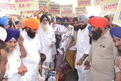 ਭਿੱਖੀਵਿੰਡ ਵਿਖੇ ਕਾਂਗਰਸੀ ਆਗੂਆਂ ਦਾ ਪੁਤਲਾ ਫੂਕਦੇ ਹੋਏ ਵਿਧਾਇਕ ਵਿਰਸਾ ਸਿੰਘ ਵਲਟੋਹਾ ਆਦਿ ਅਕਾਲੀ ਆਗੂ