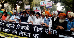 ਨਵੀਂ ਦਿੱਲੀ : ਦਿੱਲੀ ਸਿੱਖ ਗੁਰਦੁਆਰਾ ਪ੍ਰਬੰਧਕ ਕਮੇਟੀ ਅਤੇ ਸ਼੍ਰੋਮਣੀ ਅਕਾਲੀ ਦਲ ਦੇ ਕਾਰਕੂਨਾਂ ਵੱਲੋਂ ਕਾਂਗਰਸ ਆਗੂ ਜਗਦੀਸ਼ ਟਾਈਟਲਰ, ਸੱਜਣ ਕੁਮਾਰ ਅਤੇ ਕਮਲਨਾਥ ਦੀ 1984 ਸਿੱਖ ਕਤਲੇਆਮ ਵਿਚ ਕਥਿਤ ਰੂਪ ’ਚ ਸਮੂਲੀਅਤ ਹੋਣ ਨੂੰ ਲੈ ਕੇ ਅੱਜ ਜੋਰਦਾਰ ਰੋਸ਼ ਪ੍ਰਦਰਸ਼ਨ ਕੀਤਾ ਗਿਆ। ਕਾਂਗਰਸ ਦੇ ਮੁਖ ਦਫ਼ਤਰ 24 ਅਕਬਰ ਰੋਡ ਦੇ ਵੱਲ ਵੱਧ ਰਹੇ ਸਿੱਖ ਕਾਰਕੂਨਾਂ ਨੇ ਕਾਂਗਰਸ ਪ੍ਰਧਾਨ ਸੋਨੀਆ ਗਾਂਧੀ ’ਤੇ ਸਿੱਖਾਂ ਦੇ ਕਾਤਿਲਾਂ ਨੂੰ ਪਨਾਹ ਦੇਣ ਅਤੇ ਉਨ੍ਹਾਂ ਨੂੰ ਕਾਨੂੰਨੀ ਸ਼ਿਕੰਜ਼ੇ ਤੋਂ ਬਚਾਉਣ ਦੇ ਖਿਲਾਫ਼ ਜੋਰਦਾਰ ਨਾਰੇਬਾਜ਼ੀ ਕੀਤੀ।