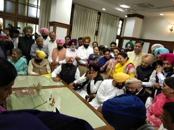 ਪੰਜਾਬ ਕਾਂਗਰਸ ਦੇ ਪ੍ਰਧਾਨ ਕੈਪਟਨ ਅਮਰਿੰਦਰ ਸਿੰਘ ਵੀ ਉਸ ਸਮੇਂ ਮੌਜੂਦ ਸਨ। ਉਹ ਪਹਿਲਾਂ ਹੀ ਰੋਸ ਵਜੋਂ ਆਪਣੀ ਲੋਕਸਭਾ ਦੀ ਮੈਂਬਰਸਿ਼ੱਪ ਤੋਂ ਅਸਤੀਫ਼ਾ ਦੇ ਚੁੱਕੇ ਹਨ। ਕਾਂਗਰਸ ਦੇ ਸਾਰੇ ਵਿਧਾਇਕਾਂ ਨੇ ਆਪਣੇ ਅਸਤੀਫ਼ੇ ਵੀਰਵਾਰ ਨੂੰ ਹੀ ਕੈਪਟਨ ਨੂੰ ਸੌਂਪ ਦਿੱਤੇ ਸਨ।