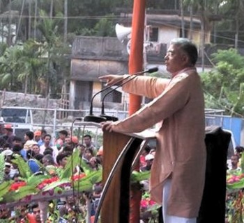ਬੀਜੇਪੀ ਨੇਤਾ ਦਲੀਪ ਘੋਸ਼ ਨੇ ਨਾਰਥ ਪਰਗਨਾ ਜਿਲ੍ਹੇ ਵਿੱਚ ਆਯੋਜਿਤ ਇੱਕ ਰੈਲੀ ਨੂੰ ਸੰਬੋਧਤ ਕਰਦੇ ਹੋਏ ਇਹ ਸ਼ਬਦ ਕਹੇ, ‘Gujarat to Guwahati,Kashmir to Kanyakumari,ppl must say ‘Bharat Mata ki Jai’ & ‘Jai Sri Ram’.Whoever opposes will be history:Dilip Ghosh,BJP .
