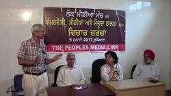 ਪ੍ਰੋਫੈਸਰ ਜਗਮੋਹਨ ਸਿੰਘ ਹੁਰਾਂ ਨੇ ਇਸ ਮੌਕੇ ਪੁੱਜੇ ਮੀਡੀਆ ਨਾਲ ਗੱਲਬਾਤ ਕਰਦਿਆਂ ਕਿਹਾ ਕਿ ਲੋਕਾਂ ਦੀਆਂ ਤਕਲੀਫ਼ਾਂ ਦੀ ਗੱਲ ਪ੍ਰਸ਼ਾਸਨ ਤੱਕ ਨਹੀਂ ਪਹੁੰਚ ਰਹੀ ਇਸ ਲਈ ਪੀਪਲਜ਼ ਮੀਡੀਆ ਲਿੰਕ ਬਣਾਇਆ ਗਿਆ ਹੈ ਤਾਂ ਜੋ ਲੋਕ ਪੱਖੀ ਪੱਤਰਕਾਰਾਂ ਦਾ ਇੱਕ ਸਰਗਰਮ ਗਰੁੱਪ ਬਣਾਇਆ ਜਾ ਸਕੇ। ਸਰੋਤਿਆਂ ਨੂੰ ਸੰਬੋਧਿਤ ਕਰਦਿਆਂ ਉਹਨਾਂ ਕਿਹਾ ਕਿ ਐਮਰਜੈਂਸੀ ਵਿੱਚ ਲੋਕਾਂ ਦੀ ਜ਼ੁਬਾਨਬੰਦੀ ਦੇ ਨਾਲ ਨਾਲ ਸੋਚਣੀ ਤੱਕ ਵੀ ਬੰਦ ਕਰ ਦਿੱਤੀ ਗਈ ਸੀ ਪਰ ਹੁਣ ਦੀ ਸਥਿਤੀ ਜ਼ਿਆਦਾ ਭਿਆਨਕ ਹੈ। ਉਹਨਾਂ ਸ਼ਹੀਦ ਭਗਤ ਸਿੰਘ ਦੇ ਵੇਲਿਆਂ ਦੀ ਪੱਤਰਕਾਰੀ ਅਤੇ ਕੁਰਬਾਨੀ ਦੀ ਵੀ ਯਾਦ ਦੁਆਈ।