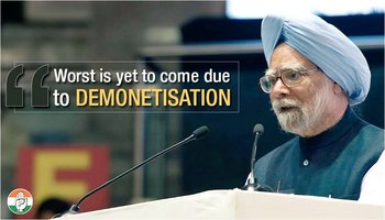 ਡਾ. ਮਨਮੋਹਨ ਸਿੰਘ ਨੇ ਕਿਹਾ ਕਿ ਭਾਰਤ ਦੇ ਰੁਜ਼ਗਾਰ ਦਾ 90ਫੀਸਦੀ ਹਿੱਸਾ ਅਸੰਗਠਿਤ ਖੇਤਰ ਵਿੱਚ ਹੈ। ਉਨ੍ਹਾਂ ਨੇ ਕਿਹਾ, ‘ 86 ਫੀਸਦੀ ਮੁਦਰਾ ਨੂੰ ਵਾਪਿਸ ਲਿਆ ਜਾਣਾ ਅਤੇ ਜੀਐਸਟੀ ਨੂੰ ਲਾਗੂ ਕਰਨ ਦੇ ਫੈਂਸਲੇ ਬਹੁਤ ਹੀ ਜਲਦਬਾਜ਼ੀ ਵਿੱਚ ਲਏ ਗਏ ਹਨ, ਜਿਸ ਨਾਲ ਹੁਣ ਕਈ ਤਰ੍ਹਾਂ ਦੀਆਂ ਖਾਮੀਆਂ ਸਾਹਮਣੇ ਆ ਰਹੀਆਂ ਹਨ। ਇਨ੍ਹਾਂ ਦਾ ਜੀਡੀਪੀ ਦੇ ਵਾਧੇ ਦੀ ਦਰ ਤੇ ਉਲਟਾ ਪ੍ਰਭਾਵ ਪੈਣਾ ਤੈਅ ਹੈ।’ ਵਰਨਣਯੋਗ ਹੈ ਕਿ ਨੋਟਬੰਦੀ ਦੇ ਐਲਾਨ ਦੇ ਕੁਝ ਦਿਨ ਬਾਅਦ ਹੀ ਪਿੱਛਲੇ ਸਾਲ 25 ਨਵੰਬਰ ਨੂੰ ਸਾਬਕਾ ਪ੍ਰਧਾਨਮੰਤਰੀ ਮਨਮੋਹਨ ਸਿੰਘ ਨੇ ਸੰਸਦ ਵਿੱਚ ਨੋਟਬੰਦੀ ਨੂੰ ਕੇਂਦਰ ਸਰਕਾਰ ਦੀ ਇਤਿਹਾਸਿਕ ਗੱਲਤੀ ਅਤੇ ਸੰਗਠਿਤ ਲੁੱਟ ਕਰਾਰ ਦਿੱਤਾ ਸੀ।
