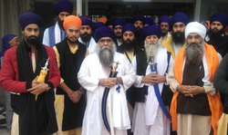 ਸੰਤ ਗਿਆਨੀ ਹਰਨਾਮ ਸਿੰਘ ਖ਼ਾਲਸਾ ਪੱਤਰਕਾਰਾਂ ਨਾਲ ਗੱਲਬਾਤ ਕਰਦੇ ਹੋਏ।