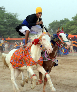 ਨਵੀਂ ਦਿੱਲੀ : ਸ਼੍ਰੋਮਣੀ ਅਕਾਲੀ ਦਲ ਦੇ ਪ੍ਰਧਾਨ ਅਤੇ ਪੰਜਾਬ ਦੇ ਸਾਬਕਾ ਉਪਮੁਖਮੰਤਰੀ ਸੁਖਬੀਰ ਸਿੰਘ ਬਾਦਲ ਨੇ ਦਿੱਲੀ ਵਿਖੇ ਹੋਈਆਂ ਖਾਲਸਾਈ ਖੇਡਾਂ ਦਾ ਉਦਘਾਟਨ ਕੀਤਾ। ਦਿੱਲੀ ਸਿੱਖ ਗੁਰਦੁਆਰਾ ਪ੍ਰਬੰਧਕ ਕਮੇਟੀ ਵੱਲੋਂ ਜਲ ਵਿਹਾਰ ਵਿਖੇ ਬਾਬਾ ਜੱਸਾ ਸਿੰਘ ਆਹਲੂਵਾਲੀਆ ਦੀ ਤੀਜ਼ੀ ਜਨਮ ਸ਼ਤਾਬਦੀ ਮੌਕੇ ਕਰਵਾਏ ਗਏ ਸਮਾਗਮਾਂ ਦੌਰਾਨ ਖਾਲਸਾਈ ਖੇਡਾਂ ਦਾ ਆਯੋਜਨ ਕੀਤਾ ਗਿਆ ਸੀ। ਖੇਡਾਂ ਦੌਰਾਨ ਨਿਹੰਗ ਸਿੰਘਾਂ ਨੇ ਘੁੜਦੌੜ, ਗੱਤਕਾ ਅਤੇ ਜਾਬਾਜ਼ ਹੌਸਲੇ ਰਾਹੀਂ ਜੌਹਰ ਦਿਖਾ ਕੇ ਦਰਸ਼ਕਾਂ ’ਚ ਉਤਸ਼ਾਹ ਭਰ ਦਿੱਤਾ।