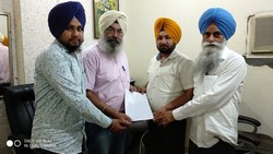 ਪੁਲੀਸ ਕਮਿਸ਼ਨਰ ਅੰਮ੍ਰਿਤਸਰ ਦੇ ਦਫ਼ਤਰ ਵਿਖੇ ਉਚ ਅਧਿਕਾਰੀ ਨੂੰ ਮੰਗ ਪੱਤਰ ਸੌਂਪਦੇ ਹੋਏ ਭਗਵੰਤ ਸਿੰਘ ਸਿਆਲਕਾ ਪ੍ਰੋ: ਸਰਚਾਂਦ ਸਿੰਘ ਤੇ ਹੋਰ।