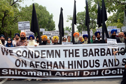 ਦਿੱਲੀ ਸਿੱਖ ਗੁਰਦੁਆਰਾ ਪ੍ਰਬੰਧਕ ਕਮੇਟੀ ਦੇ ਪ੍ਰਧਾਨ ਮਨਜੀਤ ਸਿੰਘ ਜੀ.ਕੇ., ਸ਼੍ਰੋਮਣੀ ਕਮੇਟੀ ਪ੍ਰਧਾਨ ਭਾਈ ਗੋਬਿੰਦ ਸਿੰਘ ਲੌਂਗੋਵਾਲ, ਅਕਾਲੀ ਸਾਂਸਦ ਸੁਖਦੇਵ ਸਿੰਘ ਢੀਂਡਸਾ ਅਤੇ ਪ੍ਰੇਮ ਸਿੰਘ ਚੰਦੂਮਾਜਰਾ ਨੇ ਮਾਰਚ ਦੀ ਅਗਵਾਈ ਕੀਤੀ। ਇਸ ਮੌਕੇ ਰੋਸ਼ ਵੱਜੋਂ ਸੰਗਤਾਂ ਨੇ ਹੱਥ ’ਚ ਨਾਰੇ ਲਿੱਖੀਆਂ ਤਖਤੀਆਂ ਤੇ ਕਾਲੇ ਝੰਡੇ ਫੜੇ ਹੋਏ ਸਨ, ਨਾਲ ਹੀ ਬਾਹਾਂ ’ਤੇ ਕਾਲੀ ਪੱਟੀ ਵੀ ਬੰਨੀ ਹੋਈ ਸੀ। ਅਫ਼ਗਾਨ ਦੂਤਘਰ ਦੇ ਅਧਿਕਾਰੀਆਂ ਨੇ ਥਾਣਾ ਚਾਣਿਕਯਪੁਰੀ ਦੇ ਬਾਹਰ ਖੁੱਦ ਪੁੱਜ ਕੇ ਸਿੱਖ ਆਗੂਆਂ ਤੋਂ ਮੰਗ ਪੱਤਰ ਲੈਣ ਦੀ ਪੇਸ਼ਕਸ਼ ਕੀਤੀ ਪਰ ਸਿੱਖ ਆਗੂਆਂ ਨੇ ਅਫ਼ਗਾਨੀ ਸਫੀਰ ਨਾਲ ਮੁਲਾਕਾਤ ਉਪਰੰਤ ਮੰਗ ਪੱਤਰ ਦੇਣ ਦੀ ਗੱਲ ਕਹੀ।