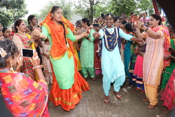 ਸਕੂਲ ਦੀਆਂ ਅਧਿਆਪਕਾਵਾਂ ਅਤੇ ਬੱਚਿਆਂ ਵਿਚ ਤੀਆਂ ਦੇ ਇਸ ਪਲੇਠੇ ਸਮਾਗਮ ਦਾ ਏਨਾ ਚਾਅ ਸੀ ਕਿ ਹੁੰਮਸ ਭਰੀ ਦੁਪਹਿਰ ਵੀ ਉਨ੍ਹਾਂ ਦਾ ਜੋਸ਼ ਮੱਠਾ ਨਾ ਕਰ ਸਕੀ। ਸਾਡੀ ਪੱਰਤਰਕਾਰਾਂ ਦੀ ਟੋਲੀ ਵਿਚੋਂ ਅਵਤਾਰ ਨੰਦਪੁਰੀ, ਪਰਮਜੀਤ ਸਿੰਘ ਬਾਗੜੀਆ ਅਤੇ ਗੁਰਸੇਵਕ ਸਿੰਘ ਦੇ ਜਾਣ ਸਾਰ ਹੀ ਉਨ੍ਹਾਂ ਸਕੂਲ ਦੇ ਮੁੱਖ ਦੁਆਰ ਨੇੜੇ ਖੜ੍ਹੇ ਵਿਸ਼ਾਲ ਪਿੱਪਲ ‘ਤੇ ਪਾਈ ਪੀਂਘ ਕੋਲ ਝੁਰਮਟ ਪਾ ਲਿਆ। ਸਭ ਤੋਂ ਪਹਿਲਾਂ ਸਕੂਲ ਦੀ ਪ੍ਰਿੰਸੀਪਲ ਮੈਡਮ ਨਵਦੀਪ ਕੌਰ ਰੋਮਾਣਾ ਜੋ ਪੰਜਾਬੀ ਸੱਭਿਆਚਾਰ ਨੂੰ ਲੈ ਕੇ ਰਾਸ਼ਟਰੀ ਪੱਧਰ ਦੇ ਮੁਕਾਬਲਿਆਂ ਵਿਚ ਟੀਮ ਨੂੰ ਗੋਲਡ ਮੈਡਲ ਜਿਤਾ ਚੁੱਕੇ ਹਨ, ਨੇ ਬੋਲੀਆਂ ਦਾ ਛੇੜਾ ਛੇੜਿਆ। ਫਿਰ ਤਾਂ ਵਿਦਿਆਰਥਣਾਂ ਅਤੇ ਅਧਿਆਪਕਾਵਾਂ ਵਿਚਕਾਰ ਅਜਿਹਾ ਤਾਲ-ਮੇਲ ਬੈਠਿਆ ਕਿ ਦੋਵੇਂ ਪਾਸਿਓਂ ਬੋਲੀ ਨਾ ਟੁੱਟੀ । ਜਿਵੇਂ ਦੋਵਾਂ ਧਿਰਾਂ ਵਿਚ ਕੋਈ ਮੁਕਾਬਲਾ ਹੋ ਰਿਹਾ ਹੋਵੇ। ਇਕ ਧਿਰ ਵਲੋਂ ਪਾਈ ਬੋਲੀ ਦੂਜੀ ਧਿਰ ਵਲੋਂ ਚੁੱਕਣ ਨਾਲ ਹੀ ਗਿੱਧੇ ਦਾ ਪਿੜ ਪੂਰਾ ਮਘ ਪਿਆ। ਜੇ ਵਿਦਿਆਰਥਣਾਂ ਗੇੜਾ ਦੇ ਕੇ ਹਟਦੀਆਂ ਤਾਂ ਅਧਿਆਪਕਾਵਾਂ ਆ ਪਿੜ੍ਹ ਮੱਲਦੀਆਂ। ਦਸਵੀਂ ਦੀਆਂ ਵਿਦਿਆਰਥਣਾਂ ਗੁਰਦੀਪ ਕੌਰ ਅਤੇ ਹਰਜੋਤ ਕੌਰ ਦਾ ਬੋਲੀਆਂ ਪਾਉਣ ਅਤੇ ਗਿੱਧਾ ਪਾਉਣ ਦਾ ਅਣਥੱਕ ਪ੍ਰਦਰਸ਼ਨ ਤਾਂ ਅਧਿਆਪਕਾਵਾਂ ਨੂੰ ਵੀ ਹੈਰਾਨ ਕਰ ਗਿਆ। ਐਨਾ ਜੋਸ਼ ਕਿ ਗਿੱਧੇ ਦੀ ਧਮਕ ਪਿੰਡ ਤੱਕ ਗੂੰਜਣ ਲਾ ਦਿੱਤੀ । ਦੋਵੇਂ ਧਿਰਾਂ ਬੋਲੀਆਂ ਵੀ ਜਿਵੇਂ ਚੁਣ ਚੁਣ ਕੇ ਲਿਆਈਆਂ ਹੋਣ । ਬੋਲੀਆਂ ਰਾਹੀਂ ਨੂੰਹ-ਸੱਸ, ਦਰਾਣੀ-ਜਠਾਣੀ ਅਤੇ ਨਣਦ-ਭਰਜਾਈ ਆਦਿ ਰਿਸ਼ਤਿਆਂ ਕੌੜੇ-ਮਿੱਠੇ ਅਨੁਭਵਾਂ ਦੇ ਨਾਲ ਨਾਲ ਭੈਣ-ਭਰਾ ਦੇ ਪਿਆਰ ਨੂੰ ਵੀ ਵਡਿਆਇਆ ਗਿਆ।। ਉਨਹਾਂ ਸਾਉਣ ਮਹੀਨੇ ਨਾਲ ਸਬੰਧਤ ਵੀ ਦਰਜਨਾਂ ਬੋਲੀਆਂ ਪਾ ਛੱਡੀਆਂ। ਲਗਭਗ 2 ਘੰਟੇ ਦੇ ਸਮੇਂ ਬਾਅਦ ਵੀ ਇੰਝ ਲਗਦਾ ਸੀ ਕਿ ਤੂੰ ਨਾ ਹਾਰੀ ਮੁਟਿਆਰੇ ਨੀ ਗਿੱਧਾ ਹਾਰ ਗਿਆ। ਸਮੂਹ ਸਟਾਫ ਵਿਚੋਂ ਸ੍ਰੀਮਤੀ ਜਸਪਾਲ ਕੌਰ, ਸੰਦੀਪ ਕੌਰ, ਚਰਨਜੀਤ ਕੌਰ, ਨਵਦੀਪ ਕੌਰ ਅਤੇ ਦਵਿੰਦਰ ਕੌਰ ਨੇ ਸਰਗਰਮ ਭੁਮਿਕਾ ਨਿਭਾਈ। ਅੰਤ ਵਿਚ ਮੈਡਮ ਨਵਦੀਪ ਕੌਰ ਨੇ ਸਾਰਿਆਂ ਨਾਲ ਖੀਰ ਦਾ ਵੀ ਅਨੰਦ ਲਿਆ।