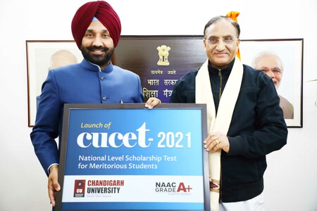 ਭਾਰਤ ਦੇ ਸਿੱਖਿਆ ਮੰਤਰੀ ਸ਼੍ਰੀ ਰਮੇਸ਼ ਪੋਖਰਿਆਲ ਨਿਸ਼ੰਕ ਵੱਲੋਂ ਚੰਡੀਗੜ੍ਹ ਯੂਨੀਵਰਸਿਟੀ ਘੜੂੰਆਂ ਦੀ ਪ੍ਰਵੇਸ਼ ਪ੍ਰੀਖਿਆ ‘ਸੀਯੂ.ਸੀ.ਈ.ਟੀ-2021’ ਲਾਂਚ ਕੀਤੀ ਗਈ। ਚੰਡੀਗੜ੍ਹ ਯੂਨੀਵਰਸਿਟੀ ’ਚ ਇੰਜੀਨੀਅਰਿੰਗ, ਐਮ.ਬੀ.ਏ, ਲਾਅ, ਫਾਰਮੇਸੀ ਅਤੇ ਐਗਰੀਕਲਚਰ ਕੋਰਸਾਂ ਵਿੱਚ ਦਾਖ਼ਲਾ ਲੈਣ ਵਾਲੇ ਵਿਦਿਆਰਥੀਆਂ ਨੂੰ ਇਹ ਪ੍ਰੀਖਿਆ ਦੇਣੀ ਲਾਜ਼ਮੀ ਹੋਵੇਗੀ। ਇਸ ਪ੍ਰੀਖਿਆ ਦੇ ਅੰਤਰਗਤ ਵਿਦਿਆਰਥੀ ਵੱਖ-ਵੱਖ ਕੋਰਸਾਂ ’ਚ ਮੈਰਿਟ ਦੇ ਆਧਾਰ ’ਤੇ ਦਾਖ਼ਲਾ ਲੈ ਸਕਣਗੇ। ਚੰਡੀਗੜ੍ਹ ਯੂਨੀਵਰਸਿਟੀ ਵੱਲੋਂ ਪ੍ਰਵੇਸ਼ ਪ੍ਰੀਖਿਆ ਦੇ ਆਧਾਰ ’ਤੇ 33 ਕਰੋੜ ਰੁਪਏ ਦੀ ਵਜ਼ੀਫ਼ਾ ਰਾਸ਼ੀ ਵੀ ਦਿੱਤੀ ਜਾਵੇਗੀ। ’ਵਰਸਿਟੀ ਵੱਲੋਂ ਹੁਣ ਤੱਕ ਦੀ ਸੱਭ ਤੋਂ ਵੱਡੀ ਵਜ਼ੀਫ਼ਾ ਰਾਸ਼ੀ ਦਾ ਲਾਭ ਲੈਣ ਲਈ ਹਰ ਕੋਰਸ ਦੇ ਵਿਦਿਆਰਥੀ ਇਸ ਪ੍ਰੀਖਿਆ ’ਚ ਭਾਗ ਲੈ ਸਕਣਗੇ ਅਤੇ ਮੈਰਿਟ ਦੇ ਆਧਾਰ ’ਤੇ ਉਨ੍ਹਾਂ ਨੂੰ ਵੱਖ-ਵੱਖ ਕੋਰਸਾਂ ਵਿੱਚ 100 ਫ਼ੀਸਦੀ ਤੱਕ ਦੇ ਵਜ਼ੀਫ਼ੇ ਪ੍ਰਦਾਨ ਕਰਨ ਦੀ ਵਿਵਸਥਾ ਕੀਤੀ ਗਈ ਹੈ।