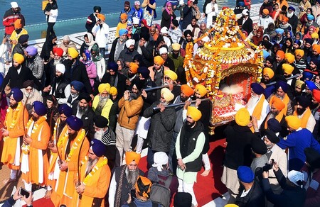 ਅੰਮ੍ਰਿਤਸਰ – ਦਸਵੇਂ ਪਾਤਸ਼ਾਹ ਸ੍ਰੀ ਗੁਰੂ ਗੋਬਿੰਦ ਸਿੰਘ ਜੀ ਦੇ ਪ੍ਰਕਾਸ਼ ਦਿਹਾੜੇ ਮੌਕੇ ਸ਼੍ਰੋਮਣੀ ਗੁਰਦੁਆਰਾ ਪ੍ਰਬੰਧਕ ਕਮੇਟੀ ਵੱਲੋਂ ਅੱਜ ਸ੍ਰੀ ਅਕਾਲ ਤਖ਼ਤ ਸਾਹਿਬ ਤੋਂ ਖ਼ਾਲਸਈ ਜਾਹੋ-ਜਲਾਲ ਨਾਲ ਨਗਰ ਕੀਰਤਨ ਸਜਾਇਆ ਗਿਆ। ਸ੍ਰੀ ਗੁਰੂ ਗ੍ਰੰਥ ਸਾਹਿਬ ਜੀ ਦੀ ਛਤਰ ਛਾਇਆ ਹੇਠ ਅਤੇ ਪੰਜ ਪਿਆਰਿਆਂ ਦੀ ਅਗਵਾਈ ’ਚ ਸਜਾਏ ਗਏ ਨਗਰ ਕੀਰਤਨ ਦੀ ਆਰੰਭਤਾ ਮੌਕੇ ਸੱਚਖੰਡ ਸ੍ਰੀ ਹਰਿਮੰਦਰ ਸਾਹਿਬ ਦੇ ਵਧੀਕ ਹੈੱਡ ਗ੍ਰੰਥੀ ਸਿੰਘ ਸਾਹਿਬ ਗਿਆਨੀ ਜਗਤਾਰ ਸਿੰਘ ਨੇ ਅਰਦਾਸ ਉਪਰੰਤ ਸ੍ਰੀ ਗੁਰੂ ਗ੍ਰੰਥ ਸਾਹਿਬ ਜੀ ਦਾ ਪਾਵਨ ਸਰੂਪ ਪਾਲਕੀ ਸਾਹਿਬ ਵਿਚ ਸੁਸ਼ੋਭਿਤ ਕਰਨ ਦੀ ਸੇਵਾ ਵੀ ਨਿਭਾਈ। ਨਗਰ ਕੀਰਤਨ ਦੌਰਾਨ ਬੈਂਡ ਅਤੇ ਗਤਕਾ ਪਾਰਟੀਆਂ ਨੇ ਹਾਜ਼ਰੀ ਭਰੀ ਅਤੇ ਸ਼ਬਦੀ ਜਥਿਆਂ ਵੱਲੋਂ ਗੁਰੂ ਸਾਹਿਬ ਜੀ ਦੀ ਉਸਤਤ ਵਿਚ ਗੁਰੂ ਜਸ ਗਾਇਨ ਕੀਤਾ ਗਿਆ। ਨਗਰ ਕੀਰਤਨ ਦੇ ਰਸਤੇ ਨੂੰ ਖੂਬਸੂਰਤ ਲੜੀਆਂ ਨਾਲ ਸਜਾਇਆ ਗਿਆ ਸੀ ਅਤੇ ਸੰਗਤਾਂ ਨੇ ਚਾਹ-ਪਾਣੀ ਅਤੇ ਫਲ ਫਰੂਟ ਨਾਲ ਸੇਵਾ ਕਰਕੇ ਵੀ ਅਥਾਹ ਸ਼ਰਧਾ ਪ੍ਰਗਟਾਈ। ਇਸ ਦੌਰਾਨ ਸੰਗਤ ਨੇ ਫੁੱਲਾਂ ਦੀ ਵਰਖਾ ਕਰਕੇ ਸ਼ਰਧਾ ਤੇ ਸਤਿਕਾਰ ਭੇਟ ਕੀਤਾ।