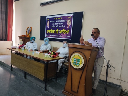 ਪ੍ਰੋਫੈਸਰ ਹਰਨੇਕ ਸਿੰਘ ਜੀ ਨੇ ਬਾਬਾ ਸਾਹਿਬ ਦੀ ਜੀਵਨੀ ਤੇ ਚਾਨਣਾ ਪਾਇਆ ਅਤੇ ਕਿਹਾ ਕਿ ਉਹਨਾਂ ਦੇ ਪਦ ਚਿੰਨ੍ਹਾਂ ਤੇ ਚੱਲਣ ਦੀ ਅਜੋਕੇ ਸਮੇਂ ਵਿੱਚ ਬਹੁਤ ਜ਼ਿਆਦਾ ਲੋੜ ਹੈ ਨਹੀਂ ਤਾਂ ਆਉਣ ਵਾਲੇ ਸਮੇਂ ਵਿੱਚ ਆਪਣਾ ਸਮਾਜ ਹੋਰ ਨਿਘਾਰ ਵੱਲ ਤੁਰ ਪਵੇਗਾ। ਉਹਨਾਂ ਆਪਣੇ ਵੱਲੋਂ ਲਿਖੀ ਕਿਤਾਬ  “ਭਾਰਤ ਰਤਨ ਬਾਬਾ ਸਾਹਿਬ ਡਾ. ਭੀਮ ਰਾਓ ਅੰਬੇਡਕਰ-ਇੱਕ ਪ੍ਰਸਿੱਧ ਅਰਥਸ਼ਾਤਰੀ”  ਦਾ ਜ਼ਿਕਰ ਕਰਦਿਆਂ ਕਿਹਾ ਕਿ ਇਸ ਵਿੱਚ ਬਾਬਾ ਸਾਹਿਬ ਦੇ ਜੀਵਨ ਦਾ ਹਰ ਪੱਖ ਛੋਹਣ ਦੀ ਕੋਸ਼ਿਸ਼ ਕੀਤੀ ਗਈੇ।