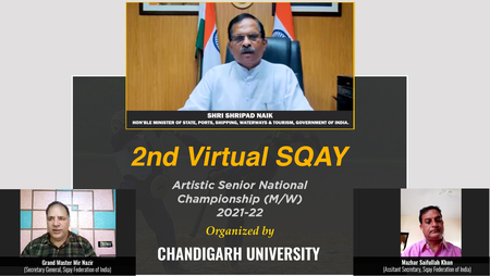 ਚੰਡੀਗੜ੍ਹ ਯੂਨੀਵਰਸਿਟੀ ਘੜੂੰਆਂ ਵਿਖੇ ਸਕੇਅ ਮਾਰਸ਼ਲ ਆਰਟਸ ਸੀਨੀਅਰ ਨੈਸ਼ਨਲ ਚੈਂਪੀਅਨਸ਼ਿਪ-2021 ਦਾ ਉਦਘਾਟਨ ਕਰਦੇ ਕੇਂਦਰੀ ਰਾਜ ਮੰਤਰੀ ਸ਼੍ਰੀਪਦ ਯੈਸੋ ਨਾਇਕ।