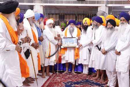 ਤਖ਼ਤ ਸ੍ਰੀ ਦਮਦਮਾ ਸਾਹਿਬ ਵੱਲੋਂ ਸੰਤ ਗਿਆਨੀ ਹਰਨਾਮ ਸਿੰਘ ਖ਼ਾਲਸਾ ਨੂੰ ਸਨਮਾਨਿਤ ਕਰਦੇ ਹੋਏ।