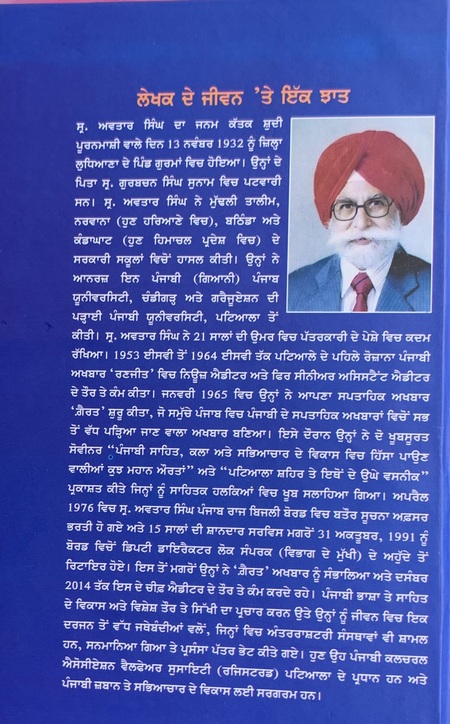 ਇਹ ਪੁਸਤਕ ਇਕ ਇਤਿਹਾਸਕ ਦਸਤਾਵੇਜ਼ ਹੈ, ਜਿਸਨੂੰ ਰੈਫਰੈਂਸ ਪੁਸਤਕ ਦੇ ਤੌਰ ਤੇ ਵਰਤਿਆ ਜਾ ਸਕਦਾ ਹੈ ਕਿਉਂਕਿ ਇਸ ਪੁਸਤਕ ਵਿਚਲੀ ਜਾਣਕਾਰੀ ਸਰਦਾਰ ਅਵਤਾਰ ਸਿੰਘ ਦੀ ਨਿੱਜੀ ਜਾਣਕਾਰੀ ਹੈ। ਉਨ੍ਹਾਂ ਨੇ ਆਪਣੀ ਜ਼ਿੰਦਗੀ ਦੇ 79 ਸਾਲ ਦੇ ਤਜ਼ਰਬੇ ਦੇ ਅਧਾਰਤ ਲਿਖੀ ਗਈ ਹੈ। ਉਨ੍ਹਾਂ ਨੂੰ ਮਹਾਰਾਜਾ ਯਾਦਵਿੰਦਰ ਸਿੰਘ ਨਾਲ ਵਿਚਰਣ ਦਾ ਮੌਕਾ ਮਿਲਦਾ ਰਿਹਾ ਹੈ। ਉਹ ਸ਼ਾਹੀ ਪਰਿਵਾਰ ਦੇ ਸਮਾਜਿਕ ਸਮਾਗਮਾ ਵਿੱਚ ਸ਼ਰੀਕ ਹੁੰਦੇ ਰਹੇ ਹਨ। ਸ੍ਰ ਅਵਤਾਰ ਸਿੰਘ ਗਿਆਨ ਦਾ ਖ਼ਜ਼ਾਨਾ ਹਨ, ਉਨ੍ਹਾਂ ਆਪਣੀ ਜ਼ਿੰਦਗੀ ਵਿੱਚ ਪਟਿਆਲਾ ਵਿੱਚ ਹੋਈਆਂ ਅਨੇਕਾਂ ਘਟਨਾਵਾਂ ਦੇ ਚਸ਼ਮਦੀਦ ਗਵਾਹ ਹਨ। ਉਮੀਦ ਕਰਦੇ ਹਾਂ ਕਿ ਉਮਰ ਦੇ ਇਸ ਦਰਾਜ਼ ਵਿੱਚ ਉਹ ਹੋਰ ਪੁਸਤਕਾਂ ਦੇ ਕੇ ਪਟਿਆਲਵੀਆਂ ਨੂੰ ਮਾਲੋਮਾਲ ਕਰਨਗੇ। ਉਨ੍ਹਾਂ ਦੀਆਂ ਇਸਤੋਂ ਪਹਿਲਾਂ ਵੀ ਦੋ ਪੁਸਤਕਾਂ ਪੰਜਾਬੀ ਸਾਹਿਤ ਅਤੇ ਕਲਾ ਅਤੇ ਸਭਿਆਚਾਰ ਦੇ ਵਿਕਾਸ ਵਿੱਚ ਹਿੱਸਾ ਪਾਉਣ ਵਾਲੀਆਂ ਕੁਝ ਮਹਾਨ ਔਰਤਾਂ ਵੀ ਪ੍ਰਕਾਸ਼ਤ ਹੋ ਚੁੱਕੀਆਂ ਹਨ। ਉਨ੍ਹਾਂ ਦਾ 21 ਸਾਲ ਦਾ ਪੱਤਰਕਾਰੀ ਦਾ ਵਿਸ਼ਾਲ ਤਜ਼ਰਬਾ ਹੈ। ਉਹ ਬਿਜਲੀ ਬੋਰਡ ਵਿੱਚੋਂ ਡਾਇਰੈਕਟਰ ਲੋਕ ਸੰਪਰਕ ਸੇਵਾ ਮੁਕਤ ਹੋਏ ਹਨ। ਪ੍ਰਬੰਧਕੀ ਸਾਬਕਾ ਜਿਲ੍ਹਾ ਲੋਕ ਸੰਪਰਕ ਅਧਿਕਾਰੀ