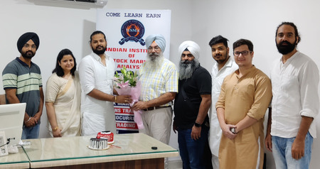 ਇੰਡੀਅਨ ਇੰਸਟੀਚਿਊਟ ਆਫ਼ ਸਟਾਕ ਮਾਰਕੀਟ ਐਨਾਲਿਸਿਸ (ਇਸਮਾ) ਦਾ ਅੱਜ ਅੰਮ੍ਰਿਤਸਰ ਦੇ ਬੀ ਬਲਾਕ ਰਣਜੀਤ ਐਵਿਨਿਊ ਵਿਖੇ ਉਦਘਾਟਨ ਮੌਕੇ ਸੰਸਥਾ ਦੇ ਚੇਅਰਮੈਨ ਸ:ਗੁਰਜੰਟ ਸਿੰਘ ਅਤੇ ਡਾਇਰੈਕਟਰ ਡਾ. ਦੀਕਸ਼ਿਤਾ (ਪੀਐਚਡੀ) ਨੂੰ ਵਧਾਈ ਦਿੰਦੇ ਹੋਏ ਪ੍ਰੋ: ਸਰਚਾਂਦ ਸਿੰਘ ਅਤੇ ਸ: ਸਾਹਿਬ ਸਿੰਘ ਢਿੱਲੋਂ ਤੇ ਹੋਰ।