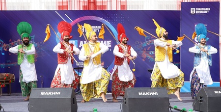 ਚੰਡੀਗੜ੍ਹ ਯੂਨੀਵਰਸਿਟੀ ਵਿਖੇ ਸੱਭਿਆਚਾਰਕ ਸਮਾਗਮ ਦੌਰਾਨ ਵੱਖ-ਵੱਖ ਵਿਭਾਗਾਂ ਦੇ ਵਿਦਿਆਰਥੀ ਆਪੋ-ਆਪਣੀਆਂ ਪੇਸ਼ਕਾਰੀਆਂ ਦਿੰਦੇ ਹੋਏ।