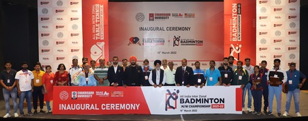 ਚੰਡੀਗੜ੍ਹ ਯੂਨੀਵਰਸਿਟੀ ਘੜੂੰਆਂ ਵਿਖੇ ਅੱਜ ਆਲ ਇੰਡੀਆ ਅੰਤਰ ਜ਼ੋਨਲ ਬੈਡਮਿੰਟਨ ਅਤੇ ਟੇਬਲ ਟੈਨਿਸ ਚੈਂਪੀਅਨਸ਼ਿਪ ਦਾ ਸ਼ਾਨਦਾਰ ਆਗ਼ਾਜ਼ ਹੋਇਆ। ਪੰਜ ਦਿਨ ਚੱਲਣ ਵਾਲੀ ਚੈਂਪੀਅਨਸ਼ਿਪ ’ਚ ਬੈਡਮਿੰਟਨ ਅਤੇ ਟੇਬਲ ਟੈਨਿਸ ਮੁਕਾਬਲਿਆਂ ਲਈ ਉੱਤਰ, ਦੱਖਣ, ਪੂਰਬ, ਪੱਛਮ ਜ਼ੋਨਾਂ ਦੀਆਂ ਵੱਖ-ਵੱਖ ਯੂਨੀਵਰਸਿਟੀਆਂ ਤੋਂ ਕ੍ਰਮਵਾਰ 32-32 ਕੁੱਲ 64 ਟੀਮਾਂ ਸ਼ਮੂਲੀਅਤ ਕਰ ਰਹੀਆਂ ਹਨ। ਬੈਡਮਿੰਟਨ ਚੈਂਪੀਅਨਸ਼ਿਪ ਵਿੱਚ 32 ਟੀਮਾਂ ਦੇ 70 ਤੋਂ ਵੱਧ ਮਹਿਲਾ ਖਿਡਾਰੀ ਅਤੇ 110 ਪੁਰਸ਼ ਖਿਡਾਰੀ ਹਿੱਸਾ ਲੈ ਰਹੇ ਹਨ, ਜਦਕਿ ਟੇਬਲ ਟੈਨਿਸ ਚੈਂਪੀਅਨਸ਼ਿਪ ਵਿੱਚ 65 ਮਹਿਲਾ ਖਿਡਾਰੀਆਂ ਸਮੇਤ 150 ਤੋਂ ਵੱਧ ਪ੍ਰਤੀਭਾਗੀ ਆਪਣੀ ਖੇਡ ਕਲਾ ਦਾ ਪ੍ਰਦਰਸ਼ਨ ਕਰਨਗੇ। ਚੈਂਪੀਅਨਸ਼ਿਪ ਦਾ ਉਦਘਾਟਨ ਚੰਡੀਗੜ੍ਹ ਯੂਨੀਵਰਸਿਟੀ ਦੇ ਪ੍ਰੋ-ਚਾਂਸਲਰ ਡਾ. ਆਰ.ਐਸ ਬਾਵਾ ਵੱਲੋਂ ਕੀਤਾ ਗਿਆ। ਉਦਘਾਟਨੀ ਸਮਾਰੋਹ ਦੌਰਾਨ ਕੰਪੀਟੀਸ਼ਨ ਡਾਇਰੈਕਟਰ ਸ਼੍ਰੀ ਸੁਰਿੰਦਰ ਮਹਾਜਨ, ਕੰਪੀਟੀਸ਼ਨ ਡਾਇਰੈਕਟਰ ਅਤੇ ਸਾਬਕਾ ਮੁੱਖ ਕੋਚ ਟੇਬਲ ਟੈਨਿਸ ਐਸ.ਏ.ਆਈ ਐਨ.ਐਸ ਐਨ.ਆਈ.ਐਸ ਪਟਿਆਲਾ ਸ਼੍ਰੀ ਵੀ.ਕੇ ਗੁਲਾਟੀ, ਡਿਪਟੀ ਰੈਫ਼ਰੀ ਅਤੇ ਮੁੱਖ ਕੋਚ ਟੇਬਲ ਟੈਨਿਸ ਐਸ.ਏ.ਆਈ ਐਨ.ਐਸ ਐਨ.ਆਈ.ਐਸ ਪਟਿਆਲਾ ਤੋਂ ਯਤੀਸ਼ ਕੁਮਾਰ ਵਿਸ਼ੇਸ਼ ਤੌਰ ’ਤੇ ਹਾਜ਼ਰ ਸਨ। ਚੈਂਪੀਅਨਸ਼ਿਪ ਰੈਫਰੀ ਰਵਿੰਦਰ ਕੁਮਾਰ, ਹਰਜਿੰਦਰ ਸਿੰਘ ਸਮੇਤ 20 ਨੈਸ਼ਨਲ ਅੰਪਾਇਰਾਂ ਦੀ ਦੇਖ-ਰੇਖ ਹੇਠ ਕਰਵਾਈ ਜਾ ਰਹੀ ਹੈ।