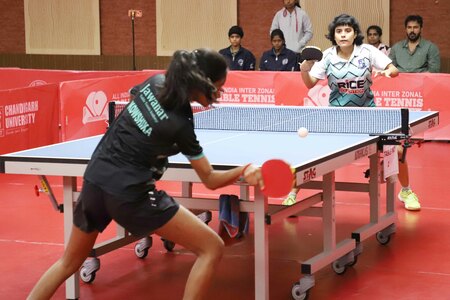 ਇਸੇ ਤਰ੍ਹਾਂ ਟੇਬਲ ਟੈਨਿਸ ਤਹਿਤ ਹੋਏ ਕੁਆਰਟਰ ਫਾਈਨਲ ਮੁਕਾਬਲਿਆਂ ਸਬੰਧੀ ਜਾਣਕਾਰੀ ਦਿੰਦਿਆਂ ਕੰਪੀਟੀਸ਼ਨ ਡਾਇਰੈਕਟਰ ਸ਼੍ਰੀ ਵੀ.ਕੇ ਗੁਲਾਟੀ ਨੇ ਦੱਸਿਆ ਕਿ ਲੜਕਿਆਂ ਦੇ ਕੁਆਰਟਰ ਮੈਚਾਂ ਦੌਰਾਨ ਚਿੱਤਕਾਰਾ ਯੂਨੀਵਰਸਿਟੀ ਪੰਜਾਬ ਦੀ ਟੀਮ ਨੇ ਪੰਜਾਬੀ ਯੂਨੀਵਰਸਿਟੀ ਪਟਿਆਲਾ ਦੀ ਟੀਮ ਨੂੰ 3-0, ਯੂਨੀਵਰਸਿਟੀ ਆਫ਼ ਮਦਰਾਸ ਨੇ ਅਦਾਮਸ ਯੂਨੀਵਰਸਿਟੀ ਕੋਲਕੱਤਾ ਨੂੰ 3-0, ਯੂਨੀਵਰਸਿਟੀ ਆਫ਼ ਮਿਜ਼ੂਰਾਮ ਦੀ ਟੀਮ ਨੇ ਐਸ.ਆਰ.ਐਮ ਯੂਨੀਵਰਸਿਟੀ ਚੇਨੱਈ ਨੂੰ 3-1 ਅਤੇ ਯੂਨੀਵਰਸਿਟੀ ਆਫ਼ ਮੁੰਬਈ ਦੀ ਟੀਮ ਨੇ ਐਮ.ਕੇ.ਬੀ ਯੂਨੀਵਰਸਿਟੀ ਭਾਵਨਗਰ (ਗੁਜਰਾਤ) ਦੀ ਟੀਮ ਨੂੰ 3-0 ਨਾਲ ਕਰਾਰੀ ਮਾਤ ਦਿੰਦਿਆਂ ਸੈਮੀਫਾਈਨਲ ’ਚ ਪਹੁੰਚ ਯਕੀਨੀ ਬਣਾਈ।ਲੜਕੀਆਂ ਦੇ ਕੁਆਰਟਰ ਫਾਈਨਲ ਮੈਚਾਂ ਦੌਰਾਨ ਯੂਨੀਵਰਸਿਟੀ ਆਫ਼ ਮਦਰਾਸ ਨੇ ਪੰਜਾਬ ਯੂਨੀਵਰਸਿਟੀ ਚੰਡੀਗੜ੍ਹ ਨੂੰ 3-0, ਐਸ.ਆਰ.ਐਮ ਯੂਨੀਵਰਸਿਟੀ ਚੇਨੱਈ ਨੇ ਐਲ.ਐਨ.ਐਮ ਯੂਨੀਵਰਸਿਟੀ ਬਿਹਾਰ ਨੂੰ 3-0 ਨਾਲ, ਅਡਮਾਸ ਯੂਨੀਵਰਸਿਟੀ ਕੋਲਕੱਤਾ ਦੀ ਟੀਮ ਨੇ ਯੂਨੀਵਰਸਿਟੀ ਆਫ਼ ਨਾਰਥ ਬੰਗਾਲ ਦੀ ਟੀਮ ਨੂੰ 3-0 ਨਾਲ ਜਦਕਿ ਜੈਨ ਯੂਨੀਵਰਸਿਟੀ ਬੰਗਲੌਰ ਦੀ ਟੀਮ ਨੇ ਸਾਵਿਤਰੀ ਬਾਈ ਫੂਲੇ ਯੂਨੀਵਰਸਿਟੀ ਪੂਨੇ ਦੀ ਟੀਮ ਨੂੰ 3-0 ਨਾਲ ਚਿੱਤ ਕਰਦਿਆਂ ਸੈਮੀਫਾਈਨਲ ਮੁਕਾਬਲਿਆਂ ’ਚ ਜਗ੍ਹਾ ਪੱਕੀ ਕੀਤੀ।
