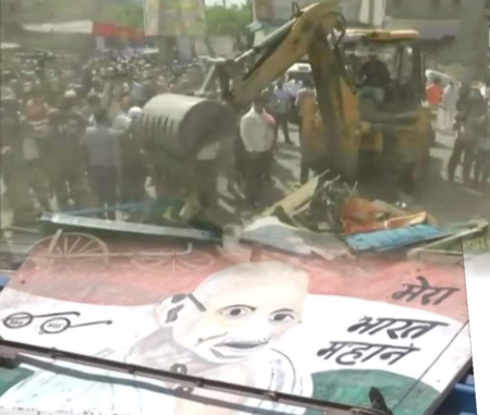 ਨਵੀਂ ਦਿੱਲੀ, (ਮਨਪ੍ਰੀਤ ਸਿੰਘ ਖਾਲਸਾ):- ਹਨੂੰਮਾਨ ਜਯੰਤੀ ‘ਤੇ ਦਿੱਲੀ ਦੇ ਜਹਾਂਗੀਰਪੁਰੀ ਵਿੱਚ ਭੜਕੀ ਹਿੰਸਾ ਦੇ ਬਾਅਦ, ਭਾਰਤੀ ਜਨਤਾ ਪਾਰਟੀ ਦੁਆਰਾ ਸ਼ਾਸਿਤ ਨਗਰ ਨਿਗਮ ਨੇ ਬੁੱਧਵਾਰ ਨੂੰ ਖੇਤਰ ਵਿੱਚ ਇੱਕ ਕਬਜੇ ਵਿਰੋਧੀ ਮੁਹਿੰਮ ਸ਼ੁਰੂ ਕੀਤੀ। ਹਾਲਾਂਕਿ, ਇਸ ਮਾਮਲੇ ਵਿਚ ਸੁਪਰੀਮ ਕੋਰਟ ਨੇ ਦਖਲ ਦੇਂਦਿਆਂ ਸਥਿਤੀ ਨੂੰ ਜਿਉਂ ਦੀ ਤਿਉਂ ਬਣਾਈ ਰੱਖਣ ਦੇ ਨਿਰਦੇਸ਼ ਦਿੱਤੇ ਸਨ । ਇਸ ਦੇ ਬਾਵਜੂਦ ਕਈ ਥਾਵਾਂ ’ਤੇ ਨਾਜਾਇਜ਼ ਉਸਾਰੀਆਂ ਨੂੰ ਤੋੜਨ ਦੀ ਕਾਰਵਾਈ ਜਾਰੀ ਰਹੀ ।