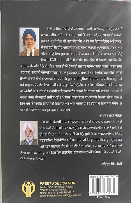 ਰਵਿੰਦਰ ਸਿੰਘ ਸੋਢੀ ਦੀ ਪੁਸਤਕ ਪਰਵਾਸੀ ਕਲਮਾਂ: ਸਾਹਿਤਕ ਫੁੱਲਾਂ ਦਾ ਗੁਲਦਸਤਾ