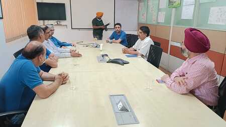 ਡਿਪਟੀ ਕਮਿਸ਼ਨਰ ਐਨ ਪੀ ਐਸ ਰੰਧਾਵਾ ਮੈਕਸ ਸਪੈਸ਼ਲਿਟੀ ਫ਼ਿਲਮਜ਼ ਲਿਮਟਿਡ ਦੇ ਅਧਿਕਾਰੀਆਂ ਨਾਲ ਜ਼ਿਲ੍ਹੇ ਵਿੱਚ ਪੋਲੀਥੀਨ/ਪਲਾਸਟਿਕ ਰੀ-ਸਾਇਕਲਿੰਗ ਪਲਾਂਟ ਦੀ ਸਥਾਪਤੀ ਬਾਰੇ ਮੀਟਿੰਗ ਕਰਦੇ ਹੋਏ।