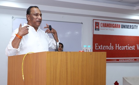 ਚੰਡੀਗੜ੍ਹ ਯੂਨੀਵਰਸਿਟੀ ਘੜੂੰਆਂ ਵਿਖੇ ਵਿਦਿਆਰਥੀਆਂ ਨਾਲ ਵਿਸ਼ੇਸ਼ ਰੂਬਰੂ ਸਮਾਗਮ ਦੌਰਾਨ ਸੰਬੋਧਨ ਕਰਦਿਆਂ ਤੇਲੰਗਾਨਾ ਦੇ ਕਿਰਤ ਅਤੇ