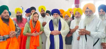 ਦਮਦਮੀ ਟਕਸਾਲ ਦੇ ਮੁਖੀ ਸੰਤ ਗਿਆਨ. ਹਰਨਾਮ ਸਿੰਘ ਖ਼ਾਲਸਾ ਸ਼ਹੀਦ ਭਾਈ ਬਲਦੇਵ ਸਿੰਘ ਦੀ ਸਪੁੱਤਰੀ ਬੀਬੀ ਜਸਬੀਰ ਕੌਰ ਨੂੰ ਵਿਸ਼ੇਸ਼ ਸਨਮਾਨ ਕਰਦੇ ਹੋਏ।