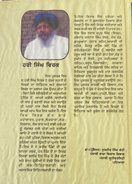 ਪੰਜਾਬੀ ਵਿੱਚ ਪਿੰਡਾਂ ਦੇ ਜੀਵਨ ਬਾਰੇ ਬਹੁਤ ਘੱਟ ਪੁਸਤਕਾਂ ਲਿਖੀਆਂ ਗਈਆਂ ਹਨ। ਹਾਲਾਂ ਕਿ ਭਾਰਤ ਦੀ 75 ਫ਼ੀ ਸਦੀ ਵਸੋਂ ਪਿੰਡਾਂ ਵਿੱਚ ਵਸਦੀ ਹੈ। ਪੰਜਾਬ ਖੇਤੀ ਪ੍ਰਧਾਨ ਸੂਬਾ ਹੋਣ ਕਰਕੇ ਭਾਰਤ ਦੇ ਅਨਾਜ ਪੈਦਾ ਕਰਨ ਵਾਲੇ ਸੂਬਿਆਂ ਵਿੱਚੋਂ ਮੋਹਰੀ ਹੈ। ਇਸ ਦਾ ਅਰਥ ਇਹ ਹੈ ਕਿ ਪੰਜਾਬੀ ਜਿਹੜੇ ਪਿੰਡਾਂ ਵਿੱਚ ਰਹਿੰਦਿਆਂ ਅਨਾਜ ਪੈਦਾ ਕਰਨ ਲਈ ਅਨੇਕਾਂ ਵੇਲਣ ਵੇਲਕੇ ਮਿਹਨਤਾਂ ਨਾਲ ਜੀਵਨ ਬਸਰ ਕਰ ਰਹੇ ਹਨ, ਉਨ੍ਹਾਂ ਦੀ ਵਿਰਾਸਤ ਨੂੰ ਇਤਿਹਾਸ ਦਾ ਹਿੱਸਾ ਨਹੀਂ ਬਣਾਇਆ ਜਾ ਰਿਹਾ। ਇਹ ਪੰਜਾਬੀਆਂ ਦੀ ਅਣਗਹਿਲੀ ਕਹੀ ਜਾ ਸਕਦੀ ਹੈ। ਗਿਆਨੀ ਗੁਰਦਿੱਤ ਸਿੰਘ ਦੀ ਸ਼ਾਹਕਾਰ ਰਚਨਾ ‘ਮੇਰਾ ਪਿੰਡ’ ਦੇ ਪ੍ਰਕਾਸ਼ਤ ਹੋਣ ਤੋਂ ਬਾਅਦ ਪਿੰਡਾਂ ਬਾਰੇ ਪੁਸਤਕਾਂ ਪ੍ਰਕਾਸ਼ਤ ਹੋਣ ਲੱਗੀਆਂ ਹਨ। ਇਹ ਖ਼ੁਸ਼ੀ ਦੀ ਗੱਲ ਹੈ ਕਿ ਪਿੰਡਾਂ ਨੂੰ ਪਿਆਰ ਕਰਨ ਵਾਲੇ ਪਿੰਡ ਦੇ ਹੀ ਨਿਵਾਸੀ ਹਰੀ ਸਿੰਘ ਵਿਰਕ ਨੇ ਆਪਣੇ ਪੁਰਖਿਆਂ ਦੇ ਪਿੰਡ ਅਤੇ ਵਿਰਕ ਗੋਤੀਆਂ ਬਾਰੇ ਪੁਸਤਕ ਲਿਖਕੇ ਆਪਣੀ ਵਿਰਾਸਤ ਦੀ ਪਹਿਚਾਣ ਹੀ ਨਹੀਂ ਬਣਾਈ ਸਗੋਂ ਆਪਣੀ ਮਿੱਟੀ ਦੀ ਮਹਿਕ ਨੂੰ ਸ਼ਰਧਾ ਦੇ ਫੁੱਲ ਭੇਂਟ ਕਰਕੇ ਆਪਣੇ ਫ਼ਰਜ ਨਿਭਾਏ ਹਨ। ਵਿਰਕਾਂ ਦੇ ਇਤਿਹਾਸ ਬਾਰੇ ਪਹਿਲਾਂ ਵੀ ਪੁਸਤਕਾਂ ਲਿਖੀਆਂ ਜਾ ਚੁੱਕੀਆਂ ਹਨ। ਭਗਵੰਤ ਸਿੰਘ ਆਜ਼ਾਦ ਨੇ ‘ਸਾਂਦਲ ਬਾਰ ਦਾ ਇਤਿਹਾਸ, ਵਿਰਕ ਅਤੇ ਹੋਰ’ ਜਿਹੜੀ ਪੁਸਤਕ ਲਿਖੀ ਹੈ, ਉਸ ਵਿੱਚ ਦਿੱਤੀ ਜਾਣਕਾਰੀ ਵਿਰਕ ਗੋਤ ਦੇ ਲੋਕਾਂ ਬਾਰੇ ਹਰੀ ਸਿੰਘ ਵਿਰਕ ਅਨੁਸਾਰ ਅਧੂਰੀ ਹੈ। ਹਰੀ ਸਿੰਘ ਵਿਰਕ ਨੇ ਲਿਖਿਆ ਹੈ ਕਿ ਦੇਸ਼ ਦੀ ਵੰਡ ਤੋਂ ਬਾਅਦ ਹਿੰਦੁਸਤਾਨ ਦੇ ਪੰਜਾਬ ਅਤੇ ਹੋਰ ਸੂਬਿਆਂ ਵਿੱਚ 140 ਤੋਂ ਵੀ ਵੱਧ ਪਿੰਡਾਂ ਵਿੱਚ ਵਸ ਰਹੇ ‘ਸਹਾਰੀ ਪਿੰਡ ਦੇ ਵਿਰਕਾਂ’ ਦੇ ਬੱਚਿਆਂ ਦੀ ਨਵੀਂ ਪੀੜ੍ਹੀ ਨੂੰ ਆਪਣੇ ਪਿਛੋਕੜ ਦੀ ਜਾਣਕਾਰੀ ਹੀ ਨਹੀਂ। ਇਸ ਲਈ ਉਨ੍ਹਾਂ ‘‘ਸਹਾਰੀ ਦੇ ਵਿਰਕਾਂ ਦਾ ਇਤਿਹਾਸ, ਹਰਦੋਂ ਸਹਾਰੀ ਜਿਲ੍ਹਾ ਲਾਹੌਰ (ਪੱਛਮੀ ਪੰਜਾਬ) ਤੋਂ ਆਏ ਵਿਰਕ ਅਤੇ ਉਨ੍ਹਾਂ ਦਾ ਬੰਸਾਵਲੀਨਾਮਾ’’ ਪੁਸਤਕ ਲਿਖੀ ਹੈ ਤਾਂ ਜੋ ਨਵੀਂ ਪੀੜ੍ਹੀ ਨੂੰ ਕਿਤਾਬੀ ਰੂਪ ਵਿੱਚ ਜਾਣਕਾਰੀ ਦੇ ਕੇ ਵਿਰਾਸਤ ਨਾਲ ਜੋੜ ਕੇ ਰੱਖਿਆ ਜਾ ਸਕੇ। ਲੇਖਕ ਨੇ ਦੱਸਿਆ ਹੈ ਕਿ ਉਨ੍ਹਾਂ ਨੂੰ ਪੁਸਤਕ ਲਿਖਣ ਦੀ ਲੋੜ ਇਸ ਕਰਕੇ ਪਈ ਕਿਉਂਕਿ ਜਦੋਂ ਇਸ ਪਿੰਡ ਦੇ ਨੌਜਵਾਨਾਂ ਨੂੰ ਉਨ੍ਹਾਂ ਦੀ ਵਿਰਾਸਤ ਬਾਰੇ ਪੁਛਿਆ ਗਿਆ ਤਾਂ ਉਹ ਬਿਲਕੁਲ ਅਣਜਾਣ ਸਨ। ਇਥੋਂ ਤੱਕ ਕਿ ਉਨ੍ਹਾਂ ਨੂੰ ਆਪਣੇ ਪਰਿਵਾਰਾਂ ਦੇ ਬਾਰੇ ਬਿਲਕੁਲ ਹੀ ਜਾਣਕਾਰੀ ਨਹੀਂ ਸੀ। ਹਰੀ ਸਿੰਘ ਵਿਰਕ ਭਾਵੇਂ ਆਪਣੇ ਆਪ ਨੂੰ ਲੇਖਕ ਨਹੀਂ ਸਮਝਦਾ ਪ੍ਰੰਤੂ ਜਿਹੜਾ ਕੰਮ ਉਨ੍ਹਾਂ, ਜਿਸ ਸਿਦਕ ਦਿਲੀ, ਲਗਨ ਅਤੇ ਦਿ੍ਰੜ੍ਹਤਾ ਨਾਲ ਕੀਤਾ ਹੈ, ਉਹ ਆਪਣੇ ਆਪ ਵਿੱਚ ਖੋਜੀ ਵਿਦਵਾਨ ਦਾ ਕਾਰਜ ਹੈ। ਇੰਜ ਕਹਿਣਾ ਉਨ੍ਹਾਂ ਦੀ ਨਮਰਤਾ ਅਤੇ ਵਡੱਤਣ ਹੈ। ਅਜਿਹੇ ਕਾਰਜ ਆਮ ਤੌਰ ਤੇ ਵਿਦਿਅਕ ਮਾਹਿਰ ਵਿਦਵਾਨਾ ਦੇ ਹੁੰਦੇ ਹਨ ਪ੍ਰੰਤੂ ਹਰੀ ਸਿੰਘ ਵਿਰਕ ਦਾ ਆਪਣੀ ਮਾਤਭੂਮੀ ਨਾਲ ਪਿਆਰ ਹੀ ਉਨ੍ਹਾਂ ਨੂੰ ਇਤਨਾ ਵੱਡਾ ਕਾਰਜ਼ ਕਰਨ ਵਿੱਚ ਸਫਲਤਾ ਦੇ ਗਿਆ। ਵੈਸੇ ਉਹ ਪਿੰਡ ਦੇ ਸਰਪੰਚ, ਅਕਾਲੀ ਦਲ ਦੀ ਜਥੇਬੰਦੀ ਦੇ ਮੁੱਖੀ ਅਤੇ ਚੇਅਰਮੈਨ ਹੋਣ ਕਰਕੇ ਸਮਾਜ ਪ੍ਰਤੀ ਸੁਜੱਗ ਹਨ। ਉਨ੍ਹਾਂ ਦੇ ਇਸ ਪ੍ਰਾਜੈਕਟ ਨੂੰ ਸਿਰੇ ਚਾੜ੍ਹਨ ਲਈ ਦਾਦ ਦੇਣੀ ਬਣਦੀ ਹੈ। ਉਨ੍ਹਾਂ ਨੇ ਪੁਸਤਕ ਦੀ ਵਿਉਂਤਬੰਦੀ ਵੀ ਸੁਚੱਜੇ ਢੰਗ ਨਾਲ ਕੀਤੀ ਹੈ। ਪਹਿਲਾਂ ਵਿਰਕਾਂ ਦੀ ਸ਼ੁਰੂਆਤ, ਵਿਕਾਸ ਅਤੇ ਬਾਅਦ ਵਿੱਚ ਕਿਸ ਥਾਂ ਤੇ ਕਿਹੜੇ ਪਰਿਵਾਰ ਪਾਕਿਸਤਾਨ ਤੋਂ ਆ ਕੇ ਵਸੇ ਹਨ। ਇਥੋਂ ਤੱਕ ਕਿ ਪਿੰਡ ਦ