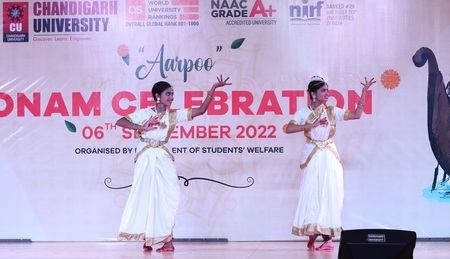 ਚੰਡੀਗੜ੍ਹ – ਫਸਲ ਦੀ ਕਟਾਈ ਅਤੇ ਕਿਸਾਨੀ ਨੂੰ ਸਮਰਪਿਤ ਕੇਰਲ ਦੇ ਪ੍ਰਸਿੱਧ ਤਿਉਹਾਰ ਓਨਮ ਨੂੰ ਮੁੱਖ ਰੱਖਦਿਆਂ ਚੰਡੀਗੜ੍ਹ ਯੂਨੀਵਰਸਿਟੀ ਘੜੂੰਆਂ ਵਿਖੇ ਸੱਭਿਆਚਾਰਕ ਪ੍ਰੋਗਰਾਮ ਦਾ ਆਯੋਜਨ ਕਰਵਾਇਆ ਗਿਆ, ਜਿਸ ’ਚ ਕੇਰਲ ਦੇ ਵੱਖ-ਵੱਖ ਸੱਭਿਆਚਾਰਾਂ ਦੀ ਜਿਊਂਦੀ ਜਾਗਦੀ ਝਲਕ ਵੇਖਣ ਨੂੰ ਮਿਲੀ। ਵਿਦਿਆਰਥੀਆਂ ਵੱਲੋਂ ਪੇਸ ਕੀਤੀਆਂ ਗਈਆਂ ਸੱਭਿਆਚਾਰਕ ਪੇਸਕਾਰੀ ’ਵਰਸਿਟੀ ਦੇ ਵਿਹੜੇ ਨੂੰ ਅਨੋਖੇ ਸੱਭਿਆਚਾਰਕ ਰੰਗ ’ਚ ਰੰਗ ਦਿੱਤਾ।
