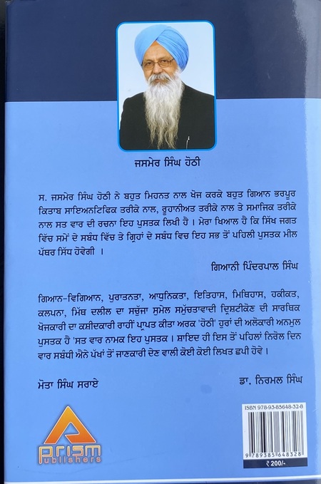 ਜਸਮੇਰ ਸਿੰਘ ਸੇਠੀ ਬਰਤਾਨੀਆਂ ਦੇ ਬਰਮਿੰਘਮ ਸ਼ਹਿਰ ਵਿੱਚ ਵਸੇ ਹੋਏ ਪੰਜਾਬੀ ਦੇ ਸਿਰਮੌਰ ਲੇਖਕ ਹਨ, ਜਿਹੜੇ ਪੰਜਾਬ, ਪੰਜਾਬੀ ਅਤੇ ਪੰਜਾਬੀਅਤ ਨਾਲ ਪਿਆਰ ਕਰਨ ਵਾਲੇ ਇਨਸਾਨ ਹਨ। ਹੁਣ ਤੱਕ ਉਨ੍ਹਾਂ ਦੀਆਂ 6 ਪੰਜਾਬੀ ਅਤੇ 3 ਹਿੰਦੀ ਵਿੱਚ ਨਿਵੇਕਲੀਆਂ ਪੁਸਤਕਾਂ ਪ੍ਰਕਾਸ਼ਤ ਹੋ ਚੁੱਕੀਆਂ ਹਨ। ਚਰਚਾ ਅਧੀਨ ‘ਸਤ ਵਾਰ’ ਪੁਸਤਕ ਭਾਰਤੀਆਂ, ਪੰਜਾਬੀਆਂ ਅਤੇ ਖਾਸ ਤੌਰ ‘ਤੇ ਨਾਨਕ ਨਾਮ ਲੇਵਾ ਸੰਗਤ ਲਈ ਅਦਭੁਤ ਜਾਣਕਾਰੀ ਪ੍ਰਦਾਨ ਕਰਦੀ ਹੈ। ਇਸ ਪੁਸਤਕ ਵਿੱਚ 7 ਦਿਨ ਐਤਵਾਰ ਤੋਂ ਸਨਿਚਰਵਾਰ ਅਤੇ 7 ਗ੍ਰਹਿਾਂ ਸੂਰਜ, ਚੰਦਰਮਾ, ਮੰਗਲ, ਬੁਧ, ਬ੍ਰਸਪਤੀ ਗੁਰੂ, ਸ਼ੁਕਰ ਅਤੇ ਸ਼ਨੀ ਬਾਰੇ ਵਿਸਤਾਰ ਪੂਰਬਕ ਜਾਣਕਾਰੀ ਦਿੱਤੀ ਹੋਈ ਹੈ ਜੋ ਕਿ ਸਿੱਖ ਧਰਮ ਦੇ ਮੁੱਦਈਆਂ ਨੂੰ ਵਹਿਮਾ ਭਰਮਾ ਤੋਂ ਦੂਰ ਰਹਿਣ ਸੰਬੰਧੀ ਵਿਲੱਖਣ ਜਾਣਕਾਰੀ ਦਿੰਦੀ ਹੈ। ਇਹ ਪੁਸਤਕ ਮੈਨੂੰ ‘ਪੰਜਾਬੀ ਯੂਰਪੀ ਸੱਥ ਵਾਲਸਾਲ ਦੇ ਸੰਚਾਲਕ’ ਮੋਤਾ ਸਿੰਘ ਸਰਾਏ ਦੇ ਉਦਮ ਰਾਹੀਂ ਪ੍ਰਾਪਤ ਹੋਈ ਹੈ। ਸਿੱਖ ਧਰਮ ਵਿੱਚ ਜਿਹੜੀ ਗ੍ਰਹਿਾਂ ਵਾਲੀ ਗੱਲ ਹੈ, ਇਹ ਆਮ ਸਿੱਖ ਸੰਗਤ ਨੂੰ ਵਹਿਮਾ ਭਰਮਾ ਵਿੱਚ ਪੈਣ ਦਾ ਸ਼ੱਕ ਪ੍ਰਗਟ ਕਰਦੀ ਸੀ। ਇਸ ਪੁਸਤਕ ਨੂੰ ਪੜ੍ਹਨ ਤੋਂ ਪਤਾ ਲੱਗਿਆ ਹੈ ਕਿ ਸ੍ਰੀ ਗੁਰੂ ਗ੍ਰੰਥ ਸਾਹਿਬ ਵਿੱਚ ਸਤ ਵਾਰ ਅਤੇ ਦੋ ਬਾਰਹ ਮਾਹਾ ਹਨ, ਜੋ ਸੂਰਜ ਦੇ ਚਲਣ ਨਾਲ ਤਬਦੀਲੀ ਆਉਂਦੀ ਹੈ, ਮਹੀਨੇ ਬਦਲਦੇ ਹਨ, ਸਾਂਕਰਾਂਤੀ ਆਉਂਦੀ ਹੈ, ਜਿਸ ਨੂੰ ਅਸੀਂ ਸੰਗ੍ਰਾਂਦ ਕਹਿੰਦੇ ਹਾਂ। ਰੁੱਤਾਂ ਬਦਲਦੀਆਂ ਹਨ, ਸ੍ਰੀ ਗੁਰੂ ਗ੍ਰੰਥ ਸਾਹਿਬ ਵਿੱਚ ਰੁੱਤਾਂ ਬਾਰੇ ਵੀ ਵਖਿਆਨ ਹੈ। ਚੰਦਰਮਾ ਅਨੁਸਾਰ ਤਿੱਥਾਂ ਦੇ ਬਦਲਣ ਨਾਲ, ਚੰਦਰਮਾ ਦੇ ਚਲਣ ਨਾਲ ਮਹੀਨਾ ਪੂਰਾ ਪੂਰਨਮਾਸ਼ੀ ਤੇ ਮੱਸਿਆ ਆਦਿ ਆਉਂਦੀਆਂ ਹਨ। ਜਸਮੇਰ ਸਿੰਘ ਸੇਠੀ ਨੇ ਇਹ ਪੁਸਤਕ ਪੂਰੀ ਖੋਜ ਤੋਂ ਬਾਅਦ ਲਿਖੀ ਲਗਦੀ ਹੈ। ਉਨ੍ਹਾਂ ਪਾਠਕਾਂ ਨੂੰ ਵਿਸਤਾਰ ਪੂਰਬਕ ਦਿਨਾ ਅਤੇ ਗ੍ਰਹਿਾਂ ਬਾਰੇ ਧਾਰਮਿਕ, ਸਮਾਜਿਕ ਅਤੇ ਵਿਗਿਆਨਿਕ ਜਾਣਕਾਰੀ ਦੇ ਕੇ ਸਾਰੇ ਭਰਮ ਭੁਲੇਖੇ ਦੂਰ ਕੀਤੇ ਹਨ। ਇਸ ਦੇ ਨਾਲ ਉਨ੍ਹਾਂ ਨੇ ਇਨ੍ਹਾਂ ਪੱਖਾਂ ਦੇ ਮੁਕਾਬਲੇ ਗੁਰਮਤਿ ਦੀਆਂ ਉਦਾਹਰਨਾ ਦੇ ਕੇ ਇਹ ਸਿੱਧ ਕਰਨ ਦੀ ਕੋਸ਼ਿਸ਼ ਕੀਤੀ ਹੈ ਕਿ ਸਿੱਖ ਧਰਮ ਵਿੱਚ ਇਨ੍ਹਾਂ ਬਾਰੇ ਵੀ ਸਹੀ ਜਾਣਕਾਰੀ ਉਪਲਭਧ ਹੈ। ਭਾਵ ਇਨ੍ਹਾਂ ਦਿਨਾਂ ਅਤੇ ਗ੍ਰਹਿਾਂ ਬਾਰੇ ਸਿੱਖ ਧਰਮ ਦਾ ਦਿ੍ਰਸ਼ਟੀਕੋਣ ਦਰਸਾਇਆ ਗਿਆ ਹੈ। ਪੰਜਾਬੀ ਵਿੱਚ ਇਹ ਅਜਿਹੀ ਪਹਿਲੀ ਪੁਸਤਕ ਹੈ, ਜਿਸ ਵਿੱਚ ਇਤਨੀ ਵਿਆਖਿਆ ਨਾਲ ਦੱਸਿਆ ਗਿਆ ਹੈ। ਸਿੱਖ ਧਰਮ ਨਵਾਂ ਹੈ ਪ੍ਰੰਤੂ ਇਹ ਮਜ਼ਮੂਨ ਪੁਰਾਣਾ ਹੈ, ਅਰਥਾਤ ਕਰੋੜਾਂ ਅਰਬਾਂ ਸਾਲ ਦਾ ਹੈ। ਸਦੀਆਂ ਤੋਂ ਚਲੇ ਆ ਰਹੇ ਭਰਮ ਭੁੱਲੇਖੇ ਦੂਰ ਕਰਨ ਲਈ ਸਤਿਗੁਰਾਂ ਨੇ ਥਿੱਤੀ ਬਾਣੀਆਂ ਤੇ ਸਤ ਵਾਰਾਂ ਦੇ ਉਪਦੇਸ਼ ਬਖ਼ਸ਼ਿਸ਼ ਕੀਤੇ ਹਨ। ਪੁਰਾਤਨ ਪ੍ਰਚਲਿਤ ਰੀਤਾਂ ਦਾ ਵਰਣਨ ਕਰਕੇ ਸਿੱਖਾਂ ਨੂੰ ਨਿਆਰੇ ਰਹਿਣ ਲਈ ਪ੍ਰਭੂ ਭਗਤੀ ਦੀ ਰੀਤ ਨੂੰ ਦਿ੍ਰੜ੍ਹ ਰੱਖਣ ਲਈ ਪ੍ਰੇਰਿਆ ਹੈ। ਜੇ ਸਤਿਗੁਰੂ ਜੀ ਗੁਰਬਾਣੀ ਵਿੱਚ ਚੰਦਰਮਾ ਦੀਆਂ ਤਿੱਥਾਂ ਬਾਰੇ ਤਿੰਨ ਬਾਣੀਆਂ ਅੰਕਿਤ ਕਰਦੇ ਹਨ ਤਾਂ ਖਾਸ ਹੀ ਸਮਝੋ। ਸਤ ਵਾਰ ਵਿੱਚ ਗ੍ਰਹਿਾਂ ਦੀ ਦੂਰੀ, ਉਨ੍ਹਾਂ ਦੀ ਰਫ਼ਤਾਰ ਤੇ ਹੋਰ ਨਿਧੀਆਂ, ਸਿਧੀਆਂ ਬਾਰੇ ਬਹੁਤ ਥਾਵਾਂ ‘ਤੇ ਹਿੰਦੂਇਜ਼ਮ ਦੀਆਂ ਉਦਾਹਰਣਾਂ ਦੇ ਕੇ ਕਮਾਲ ਕੀਤੀ ਹੈ। ਇਨ੍ਹਾਂ 9 ਗ੍ਰਹਿਾਂ ਨੂੰ ਦੇਵਤੇ ਵੀ ਕਿਹਾ ਜਾਂਦਾ ਹੈ। ਕਈ ਸਾਇੰਸਦਾਨ 8 ਗ੍ਰਹਿ ਮੰਨਦੇ ਹਨ। ਕੁਝ ਖਾਸ ਦਿਨ ਅਸੀਂ ਮਨਾਉਂਦੇ ਹਾਂ ਜਿਵੇਂ ਜਨਮ ਦਿਨ, ਵਿਆਹ ਦੀ ਵਰ੍ਹੇ ਗੰਢ, ਮਦਰਜ਼, ਫਾਦਰਜ਼ ਦਿਨ, ਆਦਿ ਪ੍ਰੰਤੂ ਸਾਰੇ 
