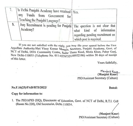 RTI reply PA_1.resizedRTI reply PA_2.resized“ਵਾਰਿਸ ਵਿਰਸੇ ਦੇ” ਜਥੇਬੰਦੀ ਦੇ ਪ੍ਰਧਾਨ ਡਾਕਟਰ ਪਰਮਿੰਦਰ ਪਾਲ ਸਿੰਘ ਨੇ ਦੱਸਿਆ ਕਿ ਪੰਜਾਬੀ ਅਕਾਦਮੀ ਵੱਲੋਂ 10 ਅਕਤੂਬਰ ਨੂੰ ਉਨ੍ਹਾਂ ਨੂੰ ਜਾਰੀ ਕੀਤੇ ਗਏ ਜਵਾਬ ‘ਚ ਦਸਿਆ ਹੈ ਕਿ ਪੰਜਾਬੀ ਅਕਾਦਮੀ ਵੱਲੋਂ ਦਿੱਲੀ ਸਰਕਾਰ ਦੇ ਸਿਖਿਆ ਵਿਭਾਗ ਦੇ ਸਕੂਲਾਂ ਨੂੰ 71 ਅਤੇ ਦਿੱਲੀ ਨਗਰ ਨਿਗਮ ਦੇ ਸਕੂਲਾਂ ਨੂੰ 185 ਆਰਜ਼ੀ ਪੰਜਾਬੀ ਭਾਸ਼ਾ ਟੀਚਰ ਉਪਲਬਧ ਕਰਵਾਏ ਹੋਏ ਹਨ। ਜਦਕਿ ਪੱਕੇ ਪੰਜਾਬੀ ਭਾਸ਼ਾ ਟੀਚਰਾਂ ਦੀ ਮੌਜੂਦਗੀ ਅਤੇ ਭਰਤੀ ਬਾਰੇ ਪੁੱਛੇ ਗਏ ਸਵਾਲਾਂ ਦਾ ਜਵਾਬ ਦੇਣ ਤੋਂ ਪੰਜਾਬੀ ਅਕਾਦਮੀ ਦਾ ਰਵਈਆ ਨਾ-ਪੱਖੀ ਭਰਿਆ ਰਿਹਾ ਹੈ। ਪੰਜਾਬੀ ਅਕਾਦਮੀ ਦੇ ਵਿਸ਼ਾਲ ਬਜ਼ਟ ਦੇ ਬਾਵਜੂਦ ਪੰਜਾਬੀ ਭਾਸ਼ਾ ਨੂੰ ਪੜਾਉਣ ਸੰਬੰਧੀ ਅਕਾਦਮੀ ਦੀ ਕਾਰਗੁਜ਼ਾਰੀ ਨੂੰ ਨਖਿਧ ਅਤੇ ਸ਼ਕੀ ਕਰਾਰ ਦਿੰਦੇ ਹੋਏ ਡਾਕਟਰ ਪਰਮਿੰਦਰ ਪਾਲ ਸਿੰਘ ਨੇ ਕਿਹਾ ਕਿ ਦਿੱਲੀ ਦੇ ਵਿਚ ਕੁੱਲ 2795 ਸਰਕਾਰੀ ਸਕੂਲ ਹਨ, ਜਿਸ ਵਿਚ ਸਿਖਿਆ ਵਿਭਾਗ ਦੇ 1027, ਦਿੱਲੀ ਨਗਰ ਨਿਗਮ ਦੇ 1705, ਨਵੀਂ ਦਿੱਲੀ ਨਗਰ ਪ੍ਰੀਸ਼ਦ ਦੇ 51 ਅਤੇ ਦਿੱਲੀ ਛਾਵਨੀ ਬੋਰਡ ਦੇ 12 ਸਕੂਲ ਸ਼ਾਮਲ ਹਨ। 2017 ਪੰਜਾਬ ਵਿਧਾਨਸਭਾ ਚੋਣਾਂ ਸਮੇਂ ਦਿੱਲੀ ਸਰਕਾਰ ਨੇ ਸਿਖਿਆ ਵਿਭਾਗ ਦੇ ਸਾਰੇ ਸਕੂਲਾਂ ਵਿਚ ਇੱਕ ਪੰਜਾਬੀ ਅਤੇ ਇੱਕ ਉਰਦੂ ਟੀਚਰ ਰੱਖਣ ਦੇ ਇਸ਼ਤਿਹਾਰ ਅਖ਼ਬਾਰਾਂ ਵਿਚ ਛਪਵਾਏ ਸਨ। ਪਰ 5 ਸਾਲ ਲੰਘਣ ਤੋਂ ਬਾਅਦ ਵੀ 90 ਫੀਸਦੀ ਸਕੂਲਾਂ ਵਿਚ ਪੰਜਾਬੀ ਟੀਚਰ ਮੌਜੂਦ ਨਹੀਂ ਹਨ। ਦਿੱਲੀ ਦੇ ਮੁੱਖ ਮੰਤਰੀ ਅਰਵਿੰਦ ਕੇਜਰੀਵਾਲ ਨੂੰ ਪੰਜਾਬੀ ਅਕਾਦਮੀ ਦਾ ਪਿਛਲੇ 15 ਸਾਲ ਦਾ ਖਾਤਿਆਂ ਦਾ ਆਡਿਟ ਕਰਵਾਉਣ ਦੀ ਮੰਗ ਕਰਦੇ ਹੋਏ ਡਾਕਟਰ ਪਰਮਿੰਦਰ ਪਾਲ ਸਿੰਘ ਨੇ ਕਿਹਾ ਕਿ ਇਹ ਮੰਗ ਸਵਰਗਵਾਸੀ ਸਾਬਕਾ ਵਿਧਾਇਕ ਭਾਈ ਜਰਨੈਲ ਸਿੰਘ ਨੇ ਵੀ ਚੁੱਕੀ ਸੀ, ਜਦੋਂ ਉਹ ਪੰਜਾਬੀ ਅਕਾਦਮੀ ਦੇ ਵਾਈਸ ਚੇਅਰਮੈਨ ਬਣੇ ਸਨ। ਇਸ ਵੇਲੇ ਪੰਜਾਬੀ ਅਕਾਦਮੀ ਕੁਝ ਚੋਣਵੇਂ ਗਾਇਕਾਂ ਦੇ ਪ੍ਰੋਗਰਾਮ ਕਰਨ ਦੇ ਇਲਾਵਾ ਪੰਜਾਬੀ ਬੋਲੀ ਬਚਾਉਣ ਦਾ ਕੋਈ ਰੋਡ-ਮੈਪ ਪੇਸ਼ ਕਰਨ ਵਿਚ ਨਾਕਾਮ ਰਹੀ ਹੈ। ਕਿਉਂਕਿ ਅਕਾਦਮੀ ਦੇ ਕਾਰਜਾਂ ਵਿਚ ਵਧਦੀ ਸਿਆਸੀ ਦਖਲਅੰਦਾਜ਼ੀ ਨੇ ਪੰਜਾਬੀ ਅਕਾਦਮੀ ਦਾ ਮਿਆਰ ਥੱਲੇ ਗਿਰਾ ਦਿੱਤਾ ਹੈ।