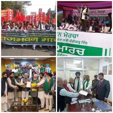 ਨਵੀਂ ਦਿੱਲੀ, (ਮਨਪ੍ਰੀਤ ਸਿੰਘ ਖਾਲਸਾ)-: ਸੰਯੁਕਤ ਕਿਸਾਨ ਮੋਰਚਾ ਦੇ ਸੱਦੇ ‘ਤੇ ਅੱਜ ਕਿਸਾਨਾਂ ਨੇ ਮਜ਼ਦੂਰਾਂ, ਵਿਦਿਆਰਥੀਆਂ, ਨੌਜਵਾਨਾਂ, ਔਰਤਾਂ ਅਤੇ ਆਮ ਲੋਕਾਂ ਦੇ ਸਹਿਯੋਗ ਨਾਲ ਵਿਸ਼ਾਲ ਮਾਰਚ ਅਤੇ ਰੈਲੀਆਂ ਕੱਢੀਆਂ। 25 ਰਾਜਾਂ ਦੀਆਂ ਰਾਜਧਾਨੀਆਂ, 300 ਤੋਂ ਵੱਧ ਜ਼ਿਲ੍ਹਾ ਹੈੱਡਕੁਆਰਟਰਾਂ ਅਤੇ ਕਈ ਤਹਿਸੀਲ ਹੈੱਡਕੁਆਰਟਰਾਂ ‘ਤੇ ਰੋਸ ਮੀਟਿੰਗਾਂ ਕੀਤੀਆਂ ਗਈਆਂ। ਕੁੱਲ ਮਿਲਾ ਕੇ, ਇਹ ਅੰਦਾਜ਼ਾ ਲਗਾਇਆ ਗਿਆ ਹੈ ਕਿ ਪੂਰੇ ਭਾਰਤ ਵਿੱਚ 3000 ਤੋਂ ਵੱਧ ਵਿਰੋਧ ਪ੍ਰਦਰਸ਼ਨ ਹੋਏ। ਸੰਯੁਕਤ ਕਿਸਾਨ ਮੋਰਚਾ ਦੇ ‘ਰਾਜ ਭਵਨ ਚਲੋ’ ਸੱਦੇ ਵਿੱਚ ਸ਼ਾਮਲ ਹੋਣ ਲਈ 5 ਲੱਖ ਤੋਂ ਵੱਧ ਨਾਗਰਿਕਾਂ ਨੇ ਕਿਸਾਨ ਵਿਰੋਧੀ ਭਾਜਪਾ ਦੀ ਅਗਵਾਈ ਵਾਲੀ ਕੇਂਦਰ ਸਰਕਾਰ ਵਿਰੁੱਧ ਆਪਣਾ ਵਿਰੋਧ ਦਰਜ ਕਰਵਾਉਣ ਅਤੇ ਕਿਸਾਨ ਮੰਗਾਂ ਸਬੰਧੀ ਮੰਗ ਪੱਤਰ ਸੌਂਪਣ ਲਈ ਸੜਕਾਂ ‘ਤੇ ਉਤਰ ਆਏ। ਕਿਸਾਨਾਂ ਨੇ ਕੇਂਦਰ ਦੀ ਸੱਤਾਧਾਰੀ ਪਾਰਟੀ ਦੀਆਂ ਕਿਸਾਨ ਵਿਰੋਧੀ ਗਤੀਵਿਧੀਆਂ ਨੂੰ ਰੋਕਣ ਅਤੇ ਦਖਲ ਦੇਣ ਲਈ ਰਾਜ ਦੇ ਰਾਜਪਾਲਾਂ ਰਾਹੀਂ ਭਾਰਤ ਦੇ ਰਾਸ਼ਟਰਪਤੀ ਨੂੰ ਆਪਣੀਆਂ ਮੰਗਾਂ ਦਾ ਇੱਕ ਮੰਗ ਪੱਤਰ ਸੌਂਪਿਆ।