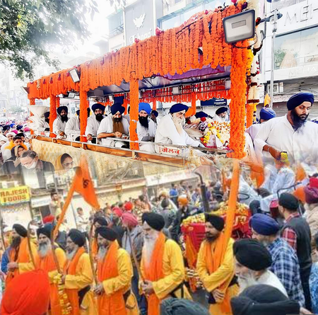 ਇਸ ਮੌਕੇ ਗੁਰਦੁਆਰਾ ਸੀਸਗੰਜ ਸਾਹਿਬ ਤੋਂ ਗੁਰਦੁਆਰਾ ਰਕਾਬਗੰਜ ਸਾਹਿਬ ਤੱਕ ਵਿਸ਼ਾਲ ਨਗਰ ਕੀਰਤਨ ਸਜਾਇਆ ਗਿਆ। ਪੰਜ ਪਿਆਰਿਆਂ ਦੀ ਅਗਵਾਈ ਹੇਠ ਗੁਰਦੁਆਰਾ ਸੀਸਗੰਜ ਸਾਹਿਬ ਤੋਂ ਨਗਰ ਕੀਰਤਨ ਆਰੰਭ ਹੋਇਆ ਜਿਸ ਵਿਚ ਸੁੰਦਰ ਪਾਲਕੀ ਸਾਹਿਬ ਵਿਚ ਸ੍ਰੀ ਗੁਰੂ ਗ੍ਰੰਥ ਸਾਹਿਬ ਸੁਸ਼ੋਭਿਤ ਸਨ। ਨਗਰ ਕੀਰਤਨ ਇਥੋਂ ਨਵੀਂ ਸੜਕ, ਚਾਵੜੀ ਬਜ਼ਾਰ, ਅਜਮੇਰੀ ਗੇਟ, ਚੂਨਾ ਮੰਡੀ, ਪਹਾੜਗੰਜ, ਪੰਚਕੂਈਆਂ ਰੋਡ ਅਤੇ ਗੁਰਦੁਆਰਾ ਬੰਗਲਾ ਸਾਹਿਬ ਹੁੰਦੇ ਹੋਏ ਗੁਰਦੁਆਰਾ ਰਕਾਬਗੰਜ ਸਾਹਿਬ ਆ ਕੇ ਸਮਾਪਤ ਹੋਇਆ।
