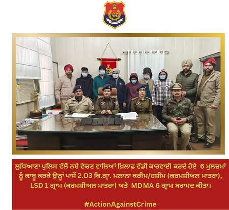 ਲੁਧਿਆਣਾ ਡਿਵੀਜ਼ਨ ਅੱਠ ਦੀ ਪੁਲੀਸ ਨੇ ਐਲਐਸਡੀ (ਲਾਈਸਰਜਿਕ ਐਸਿਡ ਡਾਈਥਾਈਲਾਮਾਈਡ) ਅਤੇ ਐਮਡੀਐਮਏ (ਮੀਥਾਈਲੇਨੇਡਿਓਕਸੀ ਮੈਥਮਫੇਟਾਮਾਈਨ) ਦੀ ਤਸਕਰੀ ਵਿੱਚ ਸ਼ਾਮਲ ਛੇ ਵਿਅਕਤੀਆਂ ਨੂੰ ਗ੍ਰਿਫ਼ਤਾਰ ਕੀਤਾ ਹੈ। ਇਸ ਨਸ਼ੇ ਨੂੰ ਅਮੀਰਾਂ ਦਾ ਨਸ਼ਾ ਕਿਹਾ ਜਾਂਦਾ ਹੈ। ਪਰ ਹੁਣ ਇਹ ਆਮ ਲੋਕਾਂ ਤੱਕ ਵੀ ਪਹੁੰਚਣਾ ਸ਼ੁਰੂ ਹੋ ਗਿਆ ਹੈ।