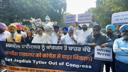 ਨਵੀਂ ਦਿੱਲੀ – ਦਿੱਲੀ ਸਿੱਖ ਗੁਰਦੁਆਰਾ ਪ੍ਰਬੰਧਕ ਕਮੇਟੀ ਦੇ ਸਾਬਕਾ ਪ੍ਰਧਾਨ ਮਨਜੀਤ ਸਿੰਘ ਜੀਕੇ ਦੀ ਅਗਵਾਈ ਹੇਠ 1984 ਸਿੱਖ ਕਤਲੇਆਮ ਦੇ ਮੁੱਖ ਆਰੋਪੀ ਜਗਦੀਸ਼ ਟਾਈਟਲਰ ਨੂੰ ਆਲ ਇੰਡੀਆ ਕਾਂਗਰਸ ਕਮੇਟੀ ਦਾ ਮੈਂਬਰ ਚੁਣੇ ਜਾਣ ਦੇ ਵਿਰੋਧ ਵਿੱਚ ਸਿੱਖਾਂ ਵੱਲੋਂ ਅੱਜ ਕਾਂਗਰਸ ਪਾਰਟੀ ਦੇ ਹੈਡਕੁਆਰਟਰ ਮੂਹਰੇ ਰੋਸ ਪ੍ਰਦਰਸ਼ਨ ਕੀਤਾ ਗਿਆ। ਪ੍ਰਦਰਸ਼ਨਕਾਰੀਆਂ ਨੇ ਕਪੂਰਥਲਾ ਹਾਊਸ ਤੋਂ ਕਾਂਗਰਸ ਹੈੱਡਕੁਆਰਟਰ ਵੱਲ ਰੋਸ ਮਾਰਚ ਕਰਦੇ ਹੋਏ ਜਗਦੀਸ਼ ਟਾਈਟਲਰ ਨੂੰ ਕਾਂਗਰਸ ਤੋਂ ਬਾਹਰ ਕੱਢਣ ਦੀ ਮੰਗ ਕਰਨ ਵਾਲੀਆਂ ਤਖ਼ਤੀਆਂ ਫੜੀਆਂ ਹੋਈਆਂ ਸਨ। ਇਸ ਮੌਕੇ ਜਗਦੀਸ਼ ਟਾਈਟਲਰ ਦਾ ਪੁਤਲਾ ਵੀ ਫੂਕਿਆ ਗਿਆ। ਬਾਅਦ ‘ਚ ਦਿੱਲੀ ਪੁਲਿਸ ਪ੍ਰਦਰਸ਼ਨਕਾਰੀਆਂ ਨੂੰ ਹਿਰਾਸਤ ‘ਚ ਲੈ ਕੇ ਮੰਦਰ ਮਾਰਗ ਥਾਣੇ ਲੈ ਗਈ। ਇਸ ਮੌਕੇ ਬੋਲਦਿਆਂ ਜਾਗੋ ਪਾਰਟੀ ਦੇ ਮੋਢੀ ਪ੍ਰਧਾਨ ਮਨਜੀਤ ਸਿੰਘ ਜੀਕੇ ਨੇ ਜਗਦੀਸ਼ ਟਾਈਟਲਰ ਨੂੰ ਲੈ ਕੇ ਗਾਂਧੀ ਪਰਿਵਾਰ ਦੇ ਨਾਲ-ਨਾਲ ਸੀਬੀਆਈ ਅਤੇ ਕੇਂਦਰ ਸਰਕਾਰ ‘ਤੇ ਵੀ ਨਿਸ਼ਾਨਾ ਸਾਧਿਆ। ਮਹਾਰਾਜਾ ਰਣਜੀਤ ਸਿੰਘ ਦੇ ਰਾਜ ਵਾਲੇ “ਸੰਯੁਕਤ ਪੰਜਾਬ” ਦਾ ਜ਼ਿਕਰ ਕਰਦਿਆਂ ਜੀਕੇ ਨੇ ਚੇਤਾਵਨੀ ਦਿੱਤੀ ਕਿ ਅੱਜ ਕੁਝ ਲੋਕ “ਅਖੰਡ ਭਾਰਤ” ਦੀ ਗੱਲ ਕਰਦੇ ਹਨ। ਜੇਕਰ ਸਿੱਖਾਂ ਨਾਲ ਚੰਗਾ ਨਾ ਕੀਤਾ ਤਾਂ ਨਤੀਜੇ ਮਾੜੇ ਹੋਣਗੇ। ਜੇਕਰ ਕੱਲ੍ਹ ਨੂੰ ਕੋਈ “ਅਖੰਡ ਪੰਜਾਬ” ਦੀ ਗੱਲ ਕਰੇ ਤਾਂ ਹੈਰਾਨੀ ਨਹੀਂ ਹੋਣੀ ਚਾਹੀਦੀ। ਕਿਉਂਕਿ ਸੀਬੀਆਈ ਕੁੰਭਕਰਨੀ ਨੀਂਦ ਸੁੱਤੀ ਹੋਈ ਹੈ, ਜਿਸ ਕਾਰਨ ਸਿੱਖਾਂ ਵਿੱਚ ਬੇਇਨਸਾਫ਼ੀ ਅਤੇ ਬੇਗਾਨਗੀ ਦੀ ਭਾਵਨਾ ਵਧ ਰਹੀ ਹੈ। ਸੀਬੀਆਈ ਜਾਣਦੀ ਹੈ ਕਿ ਜਗਦੀਸ਼ ਟਾਈਟਲਰ ਨੇ ਕੈਨੇਡਾ ‘ਚ ਗਵਾਹਾਂ ਨੂੰ ਖਰੀਦਣ ਲਈ 5 ਕਰੋੜ ਰੁਪਏ ਭੇਜੇ, ਭਾਰਤ ‘ਚ 50 ਲੱਖ ਦਿੱਤੇ, 100 ਸਿੱਖਾਂ ਨੂੰ ਮਾਰਨ ਦਾ ਟਾਈਟਲਰ ਦਾ ਆਪਣਾ ਵੀਡੀਓ ਕਬੂਲਨਾਮਾ ਵੀ ਹੈ। ਮੈਂ ਇਸ ਸਬੰਧੀ ਸੀਬੀਆਈ ਨੂੰ ਸ਼ਿਕਾਇਤ ਵੀ ਦਿੱਤੀ ਹੋਈ ਹੈ। ਪਰ ਸੀਬੀਆਈ ਮੋਦੀ ਜੀ ਦੇ “ਸਬਕਾ ਸਾਥ-ਸਬਕਾ ਵਿਕਾਸ” ਦੇ ਬਿਆਨ ‘ਤੇ ਖੜੀ ਨਹੀਂ ਹੋ ਰਹੀ ਹੈ। ਸਰਕਾਰ ਨੂੰ ਯਾਦ ਰੱਖਣਾ ਚਾਹੀਦਾ ਹੈ ਕਿ ਸਿੱਖ ਕੌਮ ਆਪਣੇ ਦੁਸ਼ਮਣ ਨੂੰ ਕਦੇ ਨਹੀਂ ਭੁੱਲਦੀ। ਇਸ ਲਈ 1984 ਦੇ ਕਾਤਲਾਂ ਨੂੰ ਵੀ ਬਖਸ਼ਿਆ ਨਹੀਂ ਜਾਵੇਗਾ।