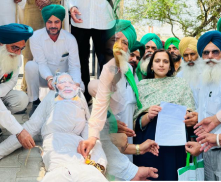 ਨਵੀਂ ਦਿੱਲੀ, (ਮਨਪ੍ਰੀਤ ਸਿੰਘ ਖਾਲਸਾ):- ਸੰਯੁਕਤ ਕਿਸਾਨ ਮੋਰਚਾ ਦੇ ਆਗੂਆਂ ਸ੍ਰੀ ਹਰਿੰਦਰ ਸਿੰਘ ਲੱਖੋਵਾਲ ਅਤੇ ਸ੍ਰੀ ਸਤਨਾਮ ਸਿੰਘ ਬਹਿਰੂ ਦੇ ਘਰਾਂ ਉਪਰ ਸੀ.ਬੀ.ਆਈ. ਵਲੋਂ ਕੀਤੀ ਗਈ ਛਾਪੇਮਾਰੀ ਵਿਰੁੱਧ ਅੱਜ ਜ਼ਿਲ੍ਹਾ ਹੈੱਡਕੁਆਰਟਰਾਂ ਉੱਪਰ ਪੰਜਾਬ ਦੀਆਂ ਕਿਸਾਨ ਜਥੇਬੰਦੀਆਂ ਨੇ ਮੁਜ਼ਾਹਰੇ ਕਰਨ ਮਗਰੋਂ ਕੇਂਦਰ ਦੀ ਮੋਦੀ ਸਰਕਾਰ ਦੀਆਂ ਅਰਥੀਆਂ ਫੂਕ ਕੇ ਜੋਰਦਾਰ ਵਿਰੋਧ ਦਰਜ਼ ਕਰਵਾਇਆ ਹੈ। ਇਸ ਦੌਰਾਨ ਡਿਪਟੀ ਕਮਿਸ਼ਨਰਾਂ ਰਾਹੀ ਦੇਸ਼ ਦੀ ਰਾਸ਼ਟਰਪਤੀ ਸ੍ਰੀਮਤੀ ਦਰੋਪਦੀ ਮੁਰਮੂ ਨੂੰ ਮੰਗ ਪੱਤਰ ਭੇਜ ਕੇ ਮੰਗ ਕੀਤੀ ਗਈ ਕਿ ਕਿਸਾਨ ਲਹਿਰ ਵਿਰੁੱਧ ਸਿਆਸੀ ਬਦਲਾਖ਼ੋਰੀ ਦੀ ਕਾਰਵਾਈ ਬੰਦ ਕਰਕੇ ਕਿਸਾਨਾਂ ਦੀਆਂ ਹੱਕੀ ਮੰਗਾਂ ਨੂੰ ਪੂਰਾ ਕੀਤਾ ਜਾਵੇ। ਸੂਬੇ ਦੇ ਲਗਭਗ ਸਾਰੇ ਜ਼ਿਲ੍ਹਾ ਹੈੱਡਕੁਆਰਟਰਾਂ ਉੱੱਪਰ ਇਹ ਮੁਜ਼ਾਹਰੇ ਹੋਏ ਹਨ।