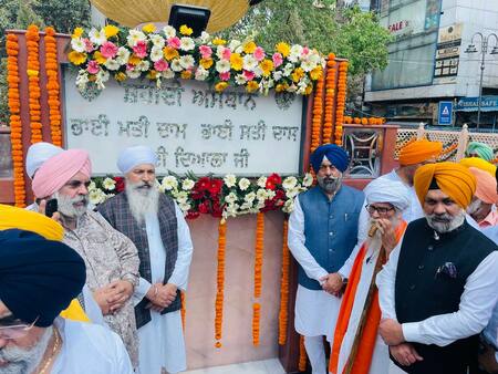 ਨਵੀਂ ਦਿੱਲੀ, (ਮਨਪ੍ਰੀਤ ਸਿੰਘ ਖਾਲਸਾ)-: ਦਿੱਲੀ ਸਿੱਖ ਗੁਰਦੁਆਰਾ ਪ੍ਰਬੰਧਕ ਕਮੇਟੀ ਵੱਲੋਂ ਗੁਰਦੁਆਰਾ ਸੀਸਗੰਜ ਸਾਹਿਬ ਚਾਂਦਨੀ ਚੌਂਕ ਵਿਖੇ ਸਥਿਤ ਗੁਰੂ ਤੇਗ ਬਹਾਦਰ ਸਾਹਿਬ ਦੇ ਅਨਿਨ ਸੇਵਕਾਂ ਭਾਈ ਮਤੀ ਦਾਸ ਜੀ, ਭਾਈ ਸਤੀ ਦਾਸ ਜੀ ਤੇ ਭਾਈ ਦਿਆਲਾ ਜੀ ਦੇ ਸ਼ਹੀਦੀ ਅਸਥਾਨ ਭਾਈ ਮਤੀ ਦਾਸ ਚੌਂਕ ਦੇ ਸੁੰਦਰੀਕਰਨ ਦੀ ਸੇਵਾ ਸੰਪੂਰਨ ਹੋਣ ਉਪਰੰਤ ਆਨੰਦ ਸਾਹਿਬ ਦਾ ਪਾਠ ਕਰ ਕੇ ਤੇ ਅਰਦਾਸ ਕਰ ਕੇ ਇਹ ਚੌਂਕ ਸੰਗਤਾਂ ਨੂੰ ਸਮਰਪਿਤ ਕੀਤਾ ਗਿਆ।