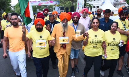 ਸਿੱਖ ਸੁਪਰਮੈਨ 112 ਸਾਲਾ ਮੈਰਾਥਨ ਦੌੜਾਕ ਫੌਜਾ ਸਿੰਘ ਨੇ ਰਾਜ ਸਭਾ ਮੈਂਬਰ ਅਤੇ ਪ੍ਰਧਾਨ ਸਨ ਫਾਊਂਡੇਸ਼ਨ, ਅੰਤਰਰਾਸ਼ਟਰੀ ਪ੍ਰਧਾਨ ਅਤੇ ਵਿਸ਼ਵ ਪੰਜਾਬੀ ਸੰਸਥਾ ਦੇ ਪ੍ਰਧਾਨ ਪਦਮ ਸ਼੍ਰੀ ਵਿਕਰਮਜੀਤ ਸਾਹਨੀ ਦੀ ਸਰਪ੍ਰਸਤੀ ਹੇਠ ਕਰਵਾਈ ਗਈ 5ਕੇ ਵਿਸਾਖੀ ਮੈਰਾਥਨ ਨੂੰ ਹਰੀ ਝੰਡੀ ਦਿਖਾ ਕੇ ਰਵਾਨਾ ਕੀਤਾ। ਮਹਾਨ ਮੈਰਾਥਨ ਰਨਰ ਫੌਜਾ ਸਿੰਘ ਨੇ ਕਿਹਾ ਕਿ ਸਾਰੀਆਂ ਬੁਰਾਈਆਂ ਨੂੰ ਦੂਰ ਰੱਖਣ ਲਈ ਹਰ ਰੋਜ਼ ਫਿੱਟ ਰਹਿਣਾ ਅਤੇ ਦੌੜਨਾ ਜ਼ਰੂਰੀ ਹੈ। ਇਸ ਦੌਰਾਨ 5ਕੇ ਵਿਸਾਖੀ ਸੁਪਰਸਿੱਖ ਰਨ ਵਿੱਚ 2000 ਤੋਂ ਵੱਧ ਪ੍ਰਤੀਯੋਗੀਆਂ ਨੇ ਭਾਗ ਲਿਆ, ਜਿਸਦੀ ਗੁਰਬਚਨ ਸਿੰਘ ਰੰਧਾਵਾ ਅਤੇ ਬਿਸ਼ਨ ਸਿੰਘ ਬੇਦੀ ਵੱਲੋਂ ਵੀ ਸ਼ੋਭਾ ਵਧਾਈ ਗਈ।