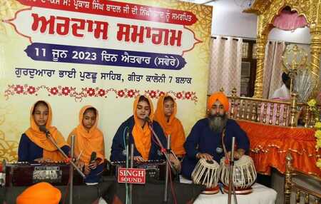 ਨਵੀਂ ਦਿੱਲੀ, (ਮਨਪ੍ਰੀਤ ਸਿੰਘ ਖਾਲਸਾ):- ਪੰਜਾਬ ਦੇ ਸਾਬਕਾ ਮੁੱਖਮੰਤਰੀ ਮਰਹੂਮ ਸ. ਪਰਕਾਸ਼ ਸਿੰਘ ਬਾਦਲ ਦੀ ਨਿੱਘੀ ਯਾਦ ਨੂੰ ਸਮਰਪਿਤ ਸ਼ਰਧਾਂਜਲੀ ਸਮਾਗਮ ਦਿੱਲੀ ਦੇ ਗੁਰਦੁਆਰਾ ਭਾਈ ਪੁਣਛੂ ਸਾਹਿਬ ਗੀਤਾ ਕਲੋਨੀ ਵਿੱਖੇ ਕਰਵਾਇਆ ਗਿਆ । ਇਸ ਸਮਾਗਮ ਵਿਚ ਪੰਥ ਦੇ ਪ੍ਰਸਿੱਧ ਰਾਗੀ ਜੱਥੇ ਭਾਈ ਚਮਨਜੀਤ ਸਿੰਘ ਲਾਲੀ ਜੀ ਅਤੇ ਭਾਈ ਅਮਰਜੀਤ ਸਿੰਘ ਜੀ ਪਟਿਆਲੇ ਵਾਲਿਆਂ ਨੇ ਸੰਗਤਾਂ ਨੂੰ ਕੀਤਰਨ ਕਰ ਗੁਰੂ ਦੀ ਇਲਾਹੀ ਬਾਣੀ ਨਾਲ ਜੋੜਿਆ । ਸਮਾਗਮ ਦੀ ਸਮਾਪਤੀ ਤੇ ਕੜਾਹ ਪ੍ਰਸ਼ਾਦਿ ਦੀ ਦੇਗ ਅਤੇ ਗੁਰੂ ਕਾ ਲੰਗਰ ਅਟੁੱਟ ਵਰਤਾਇਆ ਗਿਆ ਸੀ ।