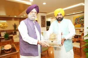 ਨਵੀਂ ਦਿੱਲੀ, (ਮਨਪ੍ਰੀਤ ਸਿੰਘ ਖਾਲਸਾ):- ਪੰਜਾਬ ਦੇ ਮੁੱਖ ਮੰਤਰੀ ਭਗਵੰਤ ਮਾਨ ਨੇ ਅੱਜ ਮਕਾਨ ਉਸਾਰੀ ਅਤੇ ਵਿਕਾਸ ਬਾਰੇ ਕੇਂਦਰੀ ਮੰਤਰੀ ਹਰਦੀਪ ਪੁਰੀ ਨੂੰ ਮਿਲ ਕੇ ਸਮਾਰਟ ਸਿਟੀ ਪ੍ਰਾਜੈਕਟ ਵਿੱਚ ਐਸ.ਏ.ਐਸ ਨਗਰ (ਮੋਹਾਲੀ) ਨੂੰ ਸ਼ਾਮਲ ਕਰਨ ਵਾਸਤੇ ਜ਼ੋਰ ਪਾਇਆ ਤਾਂ ਜੋ ਸ਼ਹਿਰ ਦੇ ਸਰਬਪੱਖੀ ਵਿਕਾਸ ਨੂੰ ਯਕੀਨੀ ਬਣਾਇਆ ਜਾ ਸਕੇ।