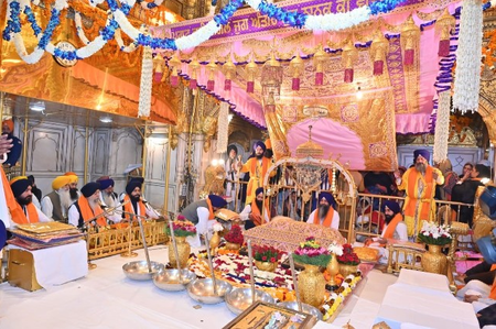 ਇਸੇ ਦੌਰਾਨ ਸ਼੍ਰੋਮਣੀ ਗੁਰਦੁਆਰਾ ਪ੍ਰਬੰਧਕ ਕਮੇਟੀ ਵੱਲੋਂ ਗੁਰਦੁਆਰਾ ਸ੍ਰੀ ਮੰਜੀ ਸਾਹਿਬ ਦੀਵਾਨ ਹਾਲ, ਸ੍ਰੀ ਅੰਮ੍ਰਿਤਸਰ ਵਿਖੇ ਸ੍ਰੀ ਅਖੰਡਪਾਠ ਸਾਹਿਬ ਦੇ ਭੋਗ ਪਾਏ ਗਏ। ਇਸ ਮੌਕੇ ਸੱਚਖੰਡ ਸ੍ਰੀ ਹਰਿਮੰਦਰ ਸਾਹਿਬ ਦੇ ਹਜ਼ੂਰੀ ਰਾਗੀ ਜਥੇ ਵੱਲੋਂ ਇਲਾਹੀ ਗੁਰਬਾਣੀ ਕੀਰਤਨ ਕੀਤਾ ਗਿਆ। ਅਰਦਾਸ ਭਾਈ ਗੁਰਚਰਨ ਸਿੰਘ ਨੇ ਕੀਤੀ ਅਤੇ ਪਾਵਨ ਹੁਕਮਨਾਮਾ ਪ੍ਰਚਾਰਕ ਭਾਈ ਸਤਵੰਤ ਸਿੰਘ ਨੇ ਸਰਵਣ ਕਰਵਾਇਆ। ਉਨ੍ਹਾ ਸ੍ਰੀ ਗੁਰੂ ਨਾਨਕ ਦੇਵ ਜੀ ਦੇ ਜੀਵਨ ਬਾਰੇ ਚਾਨਣਾ ਪਾਉਂਦਿਆਂ ਸੰਗਤਾਂ ਨੂੰ ਗੁਰੂ ਸਾਹਿਬ ਦੇ ਉਪਦੇਸ਼ਾਂ ’ਤੇ ਚੱਲਣ ਦੀ ਪ੍ਰੇਰਨਾ ਕੀਤੀ। ਗੁਰਦੁਆਰਾ ਸ੍ਰੀ ਮੰਜੀ ਸਾਹਿਬ ਦੀਵਾਨ ਹਾਲ ਵਿਖੇ ਗੁਰਮਤਿ ਸਮਾਗਮ ਹੋਏ ਜਿਸ ਵਿਚ ਢਾਡੀ, ਕਵੀਸ਼ਰ ਜਥਿਆਂ ਨੇ ਗੁਰ ਇਤਿਹਾਸ ਸਰਵਣ ਕਰਵਾਇਆ। ਇਸ ਮੌਕੇ ਕਵੀ ਦਰਬਾਰ ਵੀ ਕਰਵਾਇਆ ਗਿਆ।