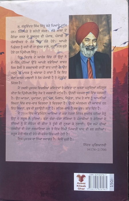 ਪ੍ਰਿੰਸੀ.ਜੱਗਵਿੰਦਰ ਸਿੰਘ ਦੇ ਇਸ ਪਲੇਠੇ ਕਾਵਿ ਸੰਗ੍ਰਹਿ ਦੀਆਂ ਸ਼ੁਭ ਕਾਮਨਾਵਾਂ, ਉਮੀਦ ਕਰਦਾ ਹਾਂ ਕਿ ਭਵਿਖ ਵਿੱਚ ਉਹ ਕਵਿਤਾ ਦੇ ਮਾਪ ਦੰਡਾਂ ਅਨੁਸਾਰ ਹੋਰ ਸੁਧਾਰ ਕਰਨ ਦੀ ਕੋਸ਼ਿਸ਼ ਕਰਕੇ ਪੰਜਾਬੀ ਮਾਂ ਬੋਲੀ ਦੀ ਸੇਵਾ ਕਰਦੇ ਰਹਿਣਗੇ।
