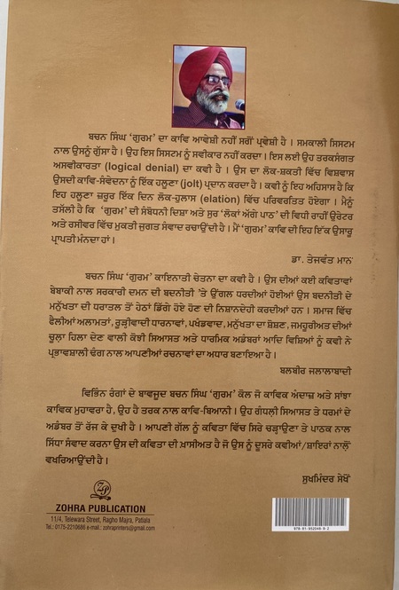 118 ਪੰਨਿਆਂ, 220 ਰੁਪਏ ਕੀਮਤ, ਸੁੰਦਰ ਦਿੱਖ ਵਾਲਾ ਇਹ ਕਾਵਿ ਸੰਗ੍ਰਹਿ ਜ਼ੋਹਰਾ ਪਬਲੀਕੇਸ਼ਨ ਪਟਿਆਲਾ ਨੇ ਪ੍ਰਕਾਸ਼ਤ ਕੀਤਾ ਹੈ।