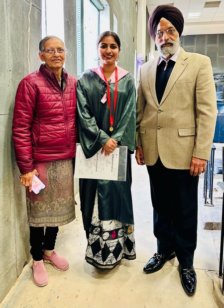 ਚਿਤਰਕਾਰ ਦਾ ਸਪੁੱਤਰ ਜੋਤਿੰਦਰ ਸਿੰਘ ਸੇਵਾ ਮੁਕਤ ਇੰਜਿਨੀਅਰ -ਇਨ -ਚੀਫ਼ ਅਤੇ ਚਿਤਰਕਾਰ ਦੀ ਨੂੰਹ ਹਰਪਾਲ ਕੌਰ ਵਿਦਿਆਰਥੀ ਮਿਸ.ਮੁਸਕਾਨ ਬਿਸ਼ਨੋਈ ਨੂੰ ਆਸ਼ੀਰਵਾਦ ਦਿੰਦੇ ਹੋਏ।