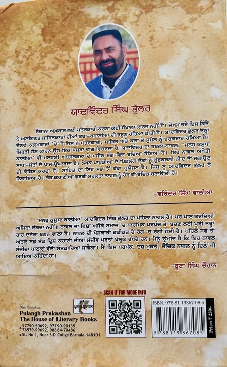 160 ਪੰਨਿਆਂ, 250 ਰੁਪਏ ਕੀਮਤ ਵਾਲਾ ਇਹ ਨਾਵਲ ਪੁਲਾਂਘ ਪ੍ਰਕਾਸ਼ਨ ਬਰਨਾਲਾ ਨੇ ਪ੍ਰਕਾਸ਼ਤ ਕੀਤਾ ਹੈ।