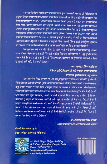 ਉਸ ਨੇ ਇਸ ਪੁਸਤਕ ਵਿੱਚ ਵਿਗਿਆਨ ਦੀ ਪਰਿਭਾਸ਼ਾ, ਵਿਗਿਆਨਕ ਭਾਸ਼ਾ ਦੇ ਅਰਥ ਤੇ ਵਿਕਾਸ ਤੱਥਾਂ ਨਾਲ ਦੱਸੀ ਹੈ। ਉਨ੍ਹਾਂ ਦੱਸਿਆ ਕਿ ਭਾਰਤ ਦੀ ਦਾਰਸ਼ਨਿਕ ਅਤੇ ਗਿਆਨਵਾਦੀ ਪਰੰਪਰਾ ਵਿੱਚ ਵਿਗਿਆਨ ਸ਼ਬਦ ਦੀ ਵਰਤੋਂ ਬਹੁਤ ਪੁਰਾਣੀ ਹੈ। ਇਹ ਸਭ ਤੋਂ ਸਰਵੋਤਮ ਹੈ। ਯੂਰਪ ਵਿੱਚ ਇਹ ਪਰੰਪਰਾ ਨਵੀਂ ਹੈ। ਵਿਗਿਆਨਕ ਜਾਂਚ ਪੜਤਾਲ ਦਾ ਮੁੱਖ ਮਨੋਰਥ ਸੱਚ ਦੀ ਭਾਲ ਕਰਨਾ ਹੈ। ਉਨ੍ਹਾਂ ਸ਼੍ਰੀ ਗੁਰੂ ਗ੍ਰੰਥ ਸਾਹਿਬ ਵਿੱਚੋਂ ਉਦਾਹਰਨਾ ਦੇ ਕੇ ਸਾਬਤ ਕੀਤਾ ਹੈ। ਪ੍ਰਸਿੱਧ ਵਿਗਿਆਨੀ ਨੀਡ੍ਹਮ ਅਨੁਸਾਰ ਅਰਬੀ ਤੋਂ ਲਾਤੀਨੀਂ ਵਿੱਚ ਯੂਰਪੀ ਅਨੁਵਾਦਕਾਂ ਨੇ ਜਾਣ ਬੁੱਝ ਕੇ ਭਾਰਤੀ ਤੇ ਚੀਨੀ ਰਚਨਾਵਾਂ ਨੂੰ ਨਜ਼ਰ ਅੰਦਾਜ਼ ਕੀਤਾ ਹੈ। ਦਸ਼ਮਲਵ ਅੰਕੜਾ ਤੰਤਰ ਨੂੰ ਅਰਬੀ ਤੰਤਰ ਨੇ ਭਾਰਤੀ ਤੰਤਰ ਮੰਨਿਆ ਹੈ।