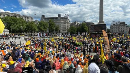 ਟ੍ਰੈਫਲਗਰ ਸਕੁਆਇਰ ਵਿੱਚ ਸਟੇਜ ਤੋਂ ਵੱਖ ਵੱਖ ਬੁਲਾਰਿਆਂ ਨੇ ਜੂਨ 84 ਦੇ ਘੁੱਲੂਘਾਰੇ ਦੌਰਾਨ ਸਮੂਹ ਸ਼ਹੀਦਾਂ ਨੂੰ ਆਪਣੀ ਸ਼ਰਧਾ ਦੇ ਫੁੱਲ ਭੇਟ ਕਰਦਿਆਂ ਭਾਰਤ ਵਿੱਚ ਘੱਟ ਗਿਣਤੀ ਕੋਮਾਂ ਤੇ ਹੋ ਰਹੇ ਜ਼ੁਲਮਾਂ ਖ਼ਿਲਾਫ਼ ਇੱਕਜੁੱਟਤਾ ਦਾ ਪ੍ਰਗਟਾਵਾ ਕਰਦਿਆ ਭਾਰਤ ਸਰਕਾਰ ਦੀ ਸਖ਼ਤ ਸ਼ਬਦਾਂ ਵਿੱਚ ਨਿਖੇਧੀ ਕੀਤੀ ਗਈ। ਰੋਸ ਮਾਰਚ ਵਿੱਚ ਇੰਗਲੈਂਡ, ਯੂਰਪ, ਗਲਾਸਗੋ, ਸਕਾਟਲੈਂਡ ਸ਼ਹਿਰਾਂ ਤੋਂ ਗੁਰਦਵਾਰਾ ਪ੍ਰਬੰਧਕਾਂ ਦੇ ਵੱਡੇ ਸਹਿਯੋਗ ਤੇ ਆਪ ਮੁਹਾਰੇ ਲੱਖਾਂ ਸੰਗਤਾਂ ਸ਼ਹੀਦਾਂ ਨੂੰ ਸ਼ਰਧਾ ਦੇ ਫੁੱਲ ਭੇਟ ਕਰਨ ਲੰਡਨ ਪਹੁੰਚੀਆਂ ਹੋਈਆਂ ਸਨ।