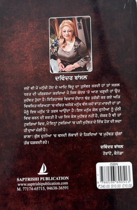 155 ਪੰਨਿਆਂ, 240 ਰੁਪਏ, ਦਿਲਕਸ਼ ਮੁੱਖ ਕਵਰ ਵਾਲਾ ਇਹ ਕਾਵਿ ਸੰਗ੍ਰਹਿ ਸਪਤਰਿਸ਼ੀ ਪਬਲੀਕੇਸ਼ਨ ਚੰਡੀਗੜ੍ਹ ਨੇ ਪ੍ਰਕਾਸ਼ਤ ਕੀਤਾ ਹੈ।